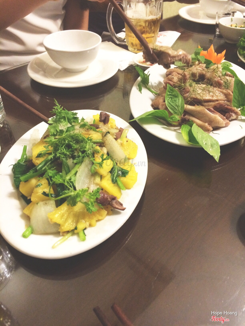 8.0Chim Trời Cá SôngTối qua nhà m có đi tiếp khách ở đây nên mới biết đến sự tồn tại của quán. Vì đi ăn vs toàn người lớn nên ko chụp nhiều ảnh được. Mình ko phải là fan của mấy con gia cầm vì ko thích gặm xương lẫn ăn nội tạng nên hôm qua đúng là ko hề muốn đến quán tí nào. Cơ mà so với suy nghĩ của m lúc đầu thì quán cũng ko quá tồi. Ở đây có lòng mề xào dứa khá ổn, thơm mùi dứa và ngọt vị lòng mề, hợp để các bố các chú nhắm riệu. Vịt luộc ở đây ổn, ko còn cái mùi hôi hôi mà m siêu ghét của vịt. Nước xì dầu chấm cùng của quán siêu ngon luôn. Hôm qua m được ăn thịt con chim cuốc gì đó, thấy bảo là phải đặt trước mới có. Eo ôi thề là đợi món này lâu dã man luôn í 😂 Con này bé bé, ăn siêu nhiều xương xẩu nên m ko mê tí nào, cơ mà thịt ngọt và chăcs lắm. Mng đi cùng mình mê lắm lắm, tấm tắc khen ngon. Quán có món xôi chim ăn cũng rất lạ và ổn nà. M thích món này nhất )) Hình như trong xôi có cả nạo dừa í, ăn thấy thơm mùi dừa lắm xD Còn mấy món nữa mà m ko ăn nên ko thể đánh giá được. Tự thấy quán này hợp vs ai tiếp khách hơn, thấy mấy bàn xung quanh toàn các chú các bác tiếp nhau ko thôi à. ...Xem thêm