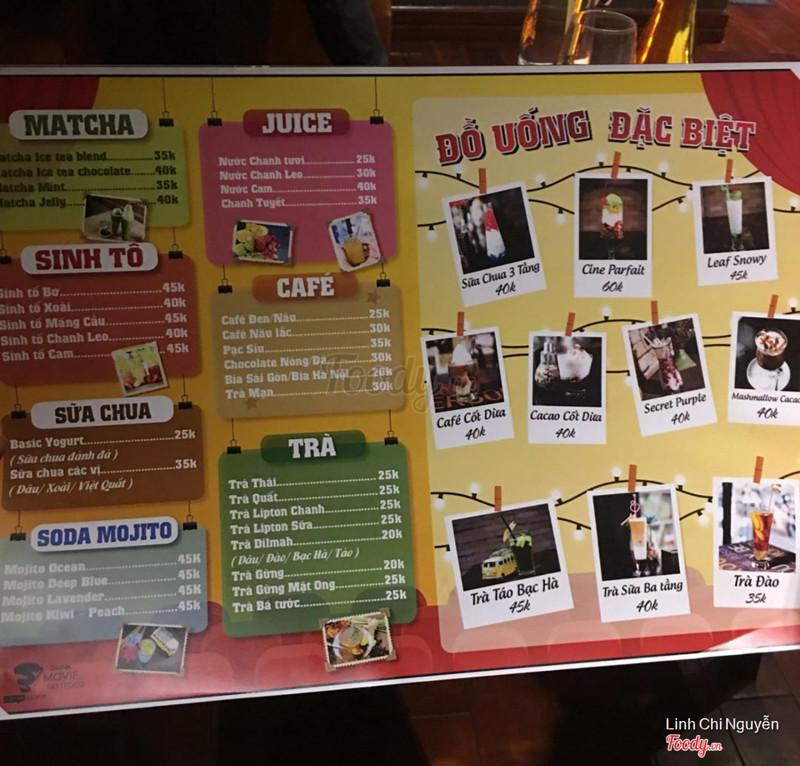 9.2CINE Cafe - Cafe Phim Hà ĐôngVị trí ở Hà Đông hơi xa trung tâm nhưng lại thuận tiện đối với mấy bạn học các trường khu vực này. Quán dễ tìm lắm, ngay gần Coopmart thôi. Không gian có nhiều góc đẹp và decor độc đáo. Phòng chiếu phim rộng, sạch sẽ, tiện nghi và sang trọng. Đồ ăn thì chỉ có pizza không ngon lắm thôi, còn lại yên tâm là món nào cũng rất rất ngon nhé. Thích nhất là gà nướng phô mai: cực nhiều thịt và ngập cheese 😍 Đồ uống thì mình thấy ngon nhất là cà phê cốt dừa và cái món việt quất gì đấy không nhớ rõ tên nữa. Mojito thì mình không uống nên không nhận xét đc. Menu giá đồ ăn và uống thì cũng như mặt bằng chung. Giá xem phim thì trước 18h là 60k/giờ còn sau là 90k/giờ. Giá ổn cho một quán cà phê phim đẹp. ...Xem thêm