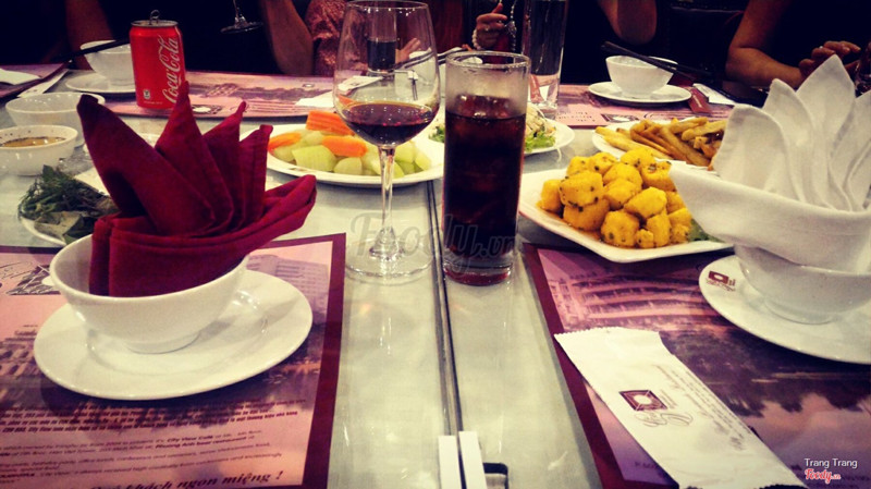 7.8City View Riverside RestaurantNhà tớ hay gọi là đi ăn ở tầng 11 😂😂😂 Quán có view đẹppppp ....chú chủ quán thân thiên đáng yêu , có mấy bạn nhân viên nữ ở đây cứ chậm chạp thế.nào ấyyy :( gọi đĩa rau mà 30p k thấy đâu :( xong gọi thêm cái ly thì mang cái cốcccccc....đồ ăn cũng đượcccc ...vừa miệngggg ...lẩu ngonnn 😂😂😂 tớ thì gọi là ngan hun khói cơ mà trong menu quá là ngan gì í nghe sang chảnh lắm .... thịt ngan ngon , chắc 1 mìh tớ ăn đc 1 đĩa mấtt .. cái món đậu đậu gì đó ăn cũng ngon cực...nhẹ nhàng. Còn đâu mấy món khác cũg đccccc Giá cả thì tớ cũg k biết vì ng lớn trả :((( ...Xem thêm