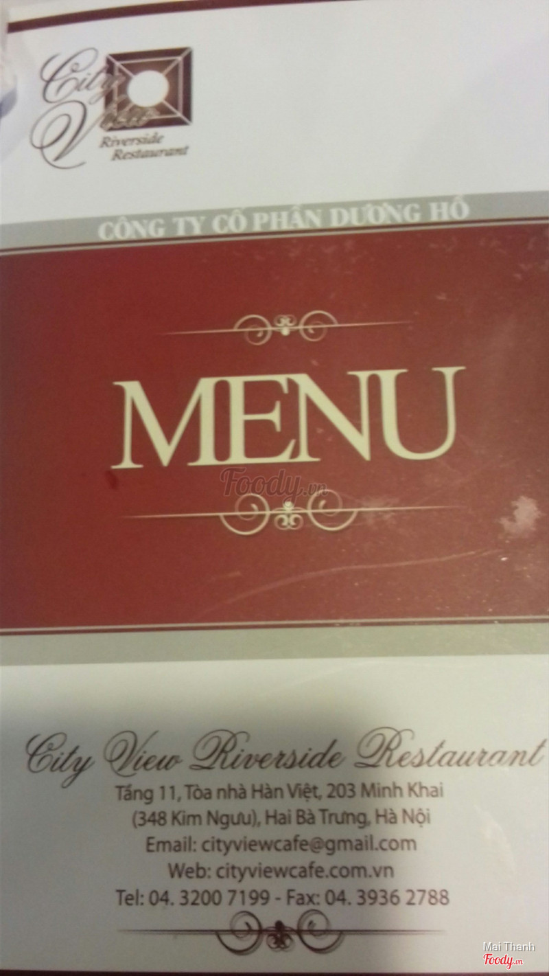 7.8City View Riverside RestaurantNhà hàng này nằm trên tầng 11 tòa nhà Việt Hàn, không gian lịch sự, sang trọng. Có view nhìn ra đường khá đẹp đó. Mình có dịp ăn trưa với bạn ở đây, ngồi bàn ngay sát cửa sổ nhìn khá thích. Buổi trưa phục vụ chủ yếu cho khách trong toà nhà. Thực đơn khá phong phú gồm cả các món cơm, lẩu... Ăn thử món cơm thịt lợn sốt cà chua, giá 55 nghìn, ăn cũng được, nhiều cơm, nhiều rau. Phục vụ ổn, khá mhanh nhẹn. ...Xem thêm