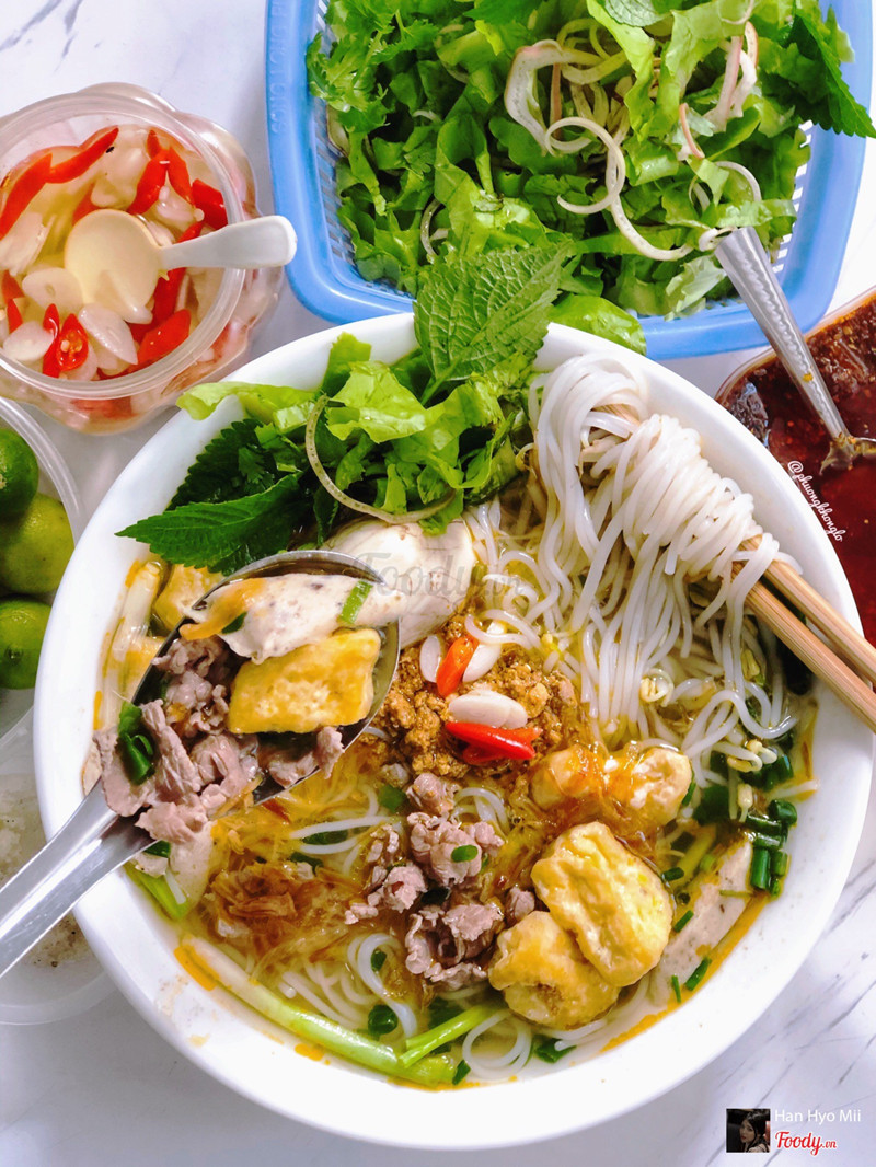 8.4Bún riêu trứng vịt lộn cô Nhàn[Bún riêu cô Nhàn] 📍10 ngõ 178***- Đống Đa ⏰8am - 2pm 💲20k - 45k/bát Trứng vịt lộn - 5k/quả Ui từ lúc ăn ở đây xong lại nghiện bún riêu ạ. Bún riêu ở đây cũng như mọi quán khác thui, có thịt bò chín tới, đậu rán, giò mềm ngon, chút riêu cua béo ngậy. Mình gọi thêm 1 quả trứng vịt lộn ăn cùng chất lượng lun. Sợi bún tươi, cho 1 chút rau sống ăn kèm cùng gia vị, giấm ớt nêm nếm vào là chén thui. Nc dùng ngọt thanh vừa miệng cực, ai ăn nhạt thì cũng chả cần phải nêm nếm gì luôn. Hôm nay hết ốc mất r nên lần sau mình sẽ ra sớm hơn 1 chút để thử, ngoài ra còn có cả miến và bánh đa nữa nha ...View more