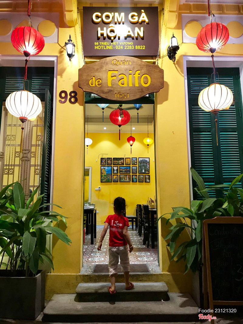 9.0Cơm Gà Hội An De Faifo - Triệu Việt VươngKhông gian: quán decor giống như nhà hàng ở phố Hội, khá rộng rãi và sạch sẽ. Với nhà có con nhỏ như mình thì không gian là 1 điểm cộng của quán. Phục vụ nhanh, ngoan. Đồ ăn: cơm hơi rời rạc và nhạt. Mình chọn suất gà đùi nhưng thịt ít chắc không được nổi nửa đùi. Cơm cánh gà rô ti lại đặc biệt nhiều thịt, được cả phần má cánh to. Tẩm ướp ngon. Đu đủ bào ăn cùng cơm cứng và nhạt, không ăn nhập gì với cơm cả. Nên thử món lòng tràng trứng. 1 xuất rất đày đặn, rưới nước xào lên cơm ăn cùng ớt chuẩn Hội An thì cũng bù lại được khoản cơm nhạt và khô phía trên kia. Nấm chiên cực mềm và ngon. Nước thạch găng thơm ngon cũng là lựa chọn không tồi. Nhà mình ăn xong được mời thêm chè thạch ngon lắm, trẻ con nó mê tít. Giá cả: trừ cơm đùi ra thì các món còn lại đều hợp lý so với giá tiền. ...Xem thêm