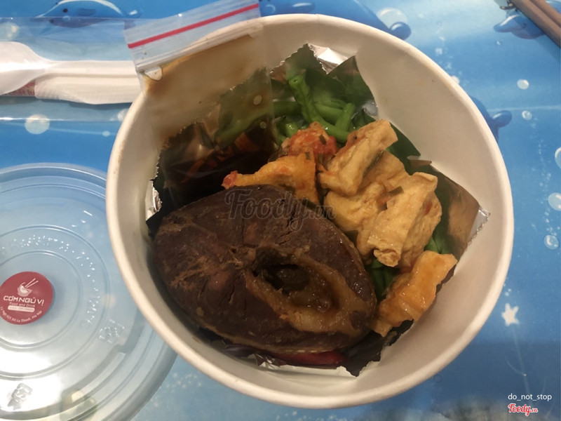 9.2Cơm Ngũ Vị - Shop Online - Đê La ThànhGói siêu đẹp Hộp giấy hịn, đồ ăn lót 1 lớp giấy bạc phía bạc trên cơm, thìa đũa, sốt chấm đầy đủ Thịt cá chắc, chuối bùi, kho hơi cay khá vừa ăn Món ăn kèm thường là đậu phụ hoặc trứng ốp nhé Đỗ xào hơi nhiều dầu, nếu quán đổi sang rau luộc thì ngon hơn nhiều á Suất này 30k quá hài lòng luôn Thấy menu có cả gạo lứt, lần tới mình sẽ ăn thử nữa Nhưng giờ giấc mở hơi lạ, thấy trên foody 20h đóng cửa mà mình chỉ đặt được lúc trưa thôi, quán xem lại nha ...Xem thêm