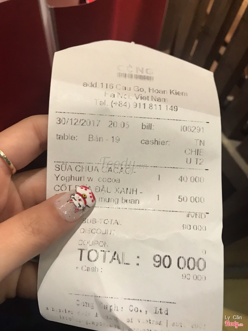 7.8Cộng Caphe - Cầu GỗCộng sáng bừng cả quảng trường đông kinh nghĩa thục luôn nhé, view quá đẹp quá xịn mỗi tội không có chỗ để xe, mà gửi quanh hồ chém ngọt thôi rồi nhất là cuối tuần, lễ tết thì đau ví cực. Không gian 3 tầng hơi nhỏ, khách thì đông nên chen được ra cái ban công là nhất đời. Order quầy tầng 1 rồi thanh toán luôn, đồ nv sẽ bê lên cho theo số. Đồ uống pha nói chung ổn, giá vẫn thế vẫn chả đắt chả rẻ. Lễ tết có phụ thu thêm năm nào cũng vậy rồi. Nhân viên lạnh lùng, không chăm sóc hết được khách. ...Xem thêm