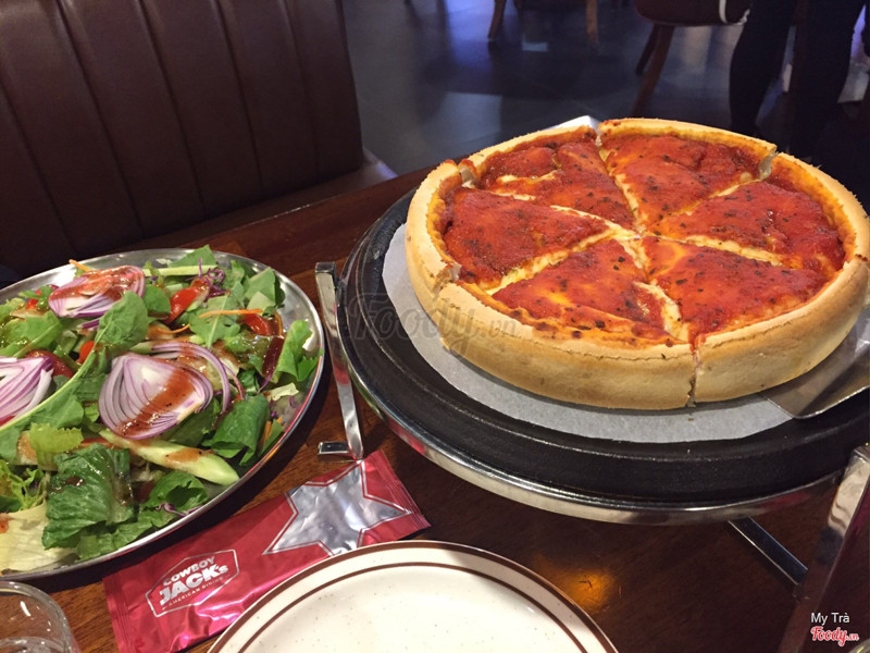 7.2Cowboy Jack's American Dining - Times CityLâu lâu rồi ko đi ăn pizza nhân nhồi mà thấy giá tăng trong khi bánh nhỏ đi thì phải? Hồi trước mình ăn chưa đầy 2 miếng đã no mà hôm kia ăn 3 miếng vẫn ok. Bây giờ ở đây có trò mới là đốt lửa bên dưới để phô mai ko bị cứng nếu để lâu. Mình thấy cũng hay, mỗi tội là đến lúc cắt bánh, phô mai chảy nhoe nhoét ra ko được đẹp cho lắm :)). Trước đến toàn ăn salad gà với cá ngừ, giờ đổi vị ăn mỗi salad rau thôi thì thấy cũng ngon phết, cơ bản là tại vì mình thích ăn rau, như vậy khi ăn bánh phô mai sẽ không bị ngấy. Hi vọng lần sau đến ăn bánh sẽ to ra và giá giữ nguyên, giảm đi càng tốt🙄 ...Xem thêm