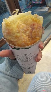 7.0Crépe Cake - Cửa BắcQuán nằm ngay đối diện trường học, cạnh là newday rồi shun cũng hot phết. Không gian siêu chật chội, có 2 bàn gỗ nhỏ ngồi lại cũng hạn chế thôi. Quầy làm bánh chiếm hết diện tích mà chỉ hợp mua mang đi là đúng rồi. Ngó 1 lượt cũng nhiều vị mix từ mặn, ngọt đủ cả. Làm bánh tốc độ chuyên nghiệp có khác nhanh kinh, vừa ngồi xuống chưa rôm ra câu nào đã xong. Khuyến khích ăn ngay sẽ giòn ngon hơn, mặc dù vỏ không dày cơ mà ỉu đi dễ bị ngán. Nhân phô mai dăm bông ngon, trải đều nên ăn đến cuối vẫn còn dăm bông. Giá khá hợp túi sinh viên-học sinh. Sẽ còn quay lại ủng hộ. ...Xem thêm