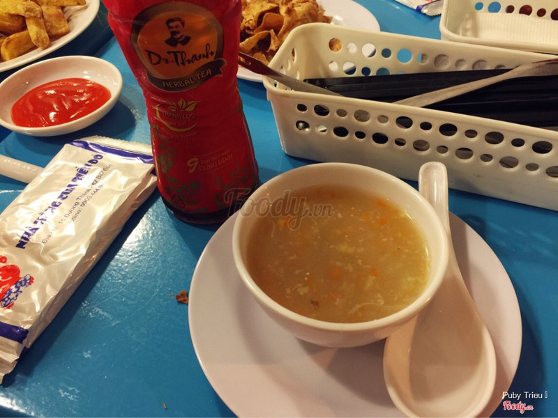 8.4Cua :3 Yummy Yummy :3Mình bị thích ăn hải sản, nên thấy tên quán nghe hấp dẫn cái là phải ra ăn luôn. Quán khá ấn tượng với phong cách vintage đầy màu sắc, hiếm mình thấy quán hải sản nào có cách bày trí kiểu này luôn. Tầng trên có ngồi bệt, mình mặc váy thì ngồi khó ngồi 1 xíu. Quán có món khoai sấy, để ăn vui lúc chờ đồ ra, thấy ngon phết. Nem cua ở đây là miếng vuông, được cắt làm 4, ăn giòn giòn, mỗi tội miếng hơi to. Miến cua xào mềm, lại nhiều cua nên ăn rất thơm. Lẩu thì có nước lẩu hoa quả, nghe lạ mà mùi vị khá khá ổn, cua chắc thịt, mỗi tội gạch ăn hơi cứng hic hic. Nhân viên nhiệt tình, phục vụ cẩn thận. ...View more