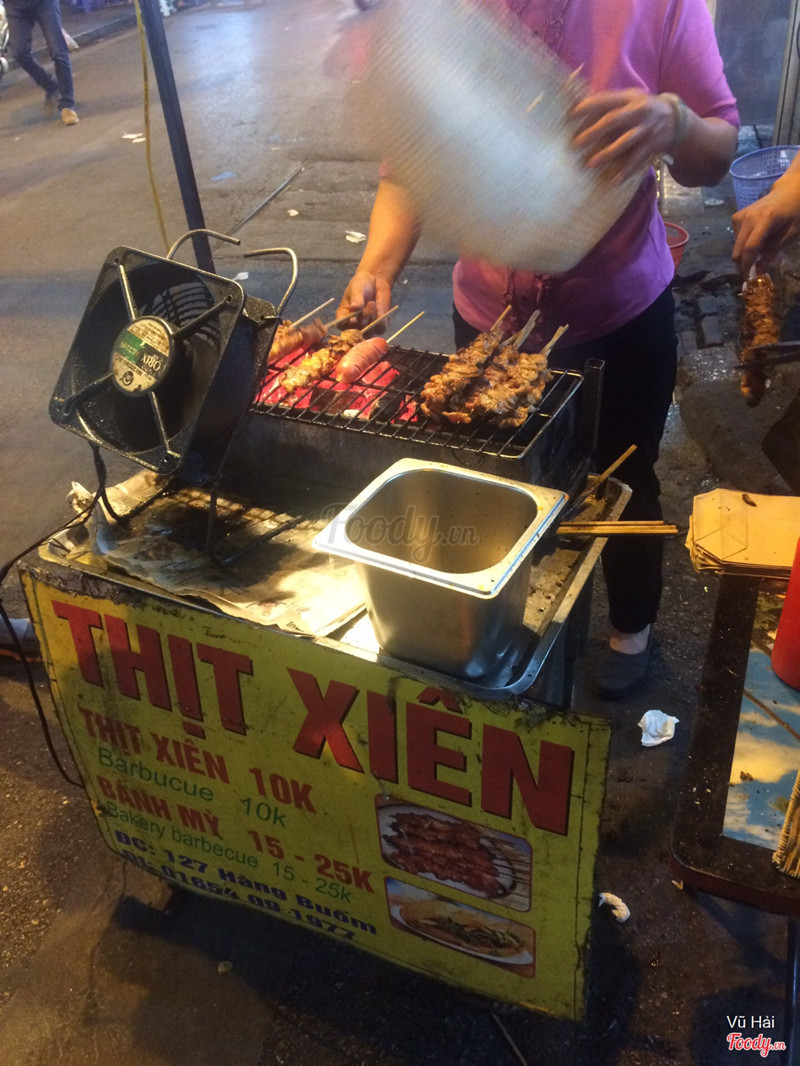 7.6Bánh Mì Thịt Xiên - Hàng BuồmHôm trước đi chợ đêm chúng mình lại lượn vào đây ăn thịt xiên. Hàng này mình vẫn khá thích vì thịt ngon. Gần đây quay lại thì thấy được sắp xếp gọn gàng sạch sẽ hơn trước rất nhiều rồi. Cô chủ hàng thì vẫn hiền, chu đáo và nhẹ nhàng như trước. Xiên cũng k phải rẻ. 10k 1 xiên. Nhưng cũng k đắt quá vì xiên thịt ở đây thực sự rất ngon, lần này ăn lại ngon như lần đầu. Nạc mỡ vừa phải, tẩm ướp đậm đà. Tuy nhiên thịt chưa dày lắm. Nhưng ngon nên vẫn cảm thấy khá đã miệng. Hàng này vào 3 ngày cuối tuần sẽ được bán ở ngay đầu Hàng Buồm giao với chợ đêm nhé. ...Xem thêm
