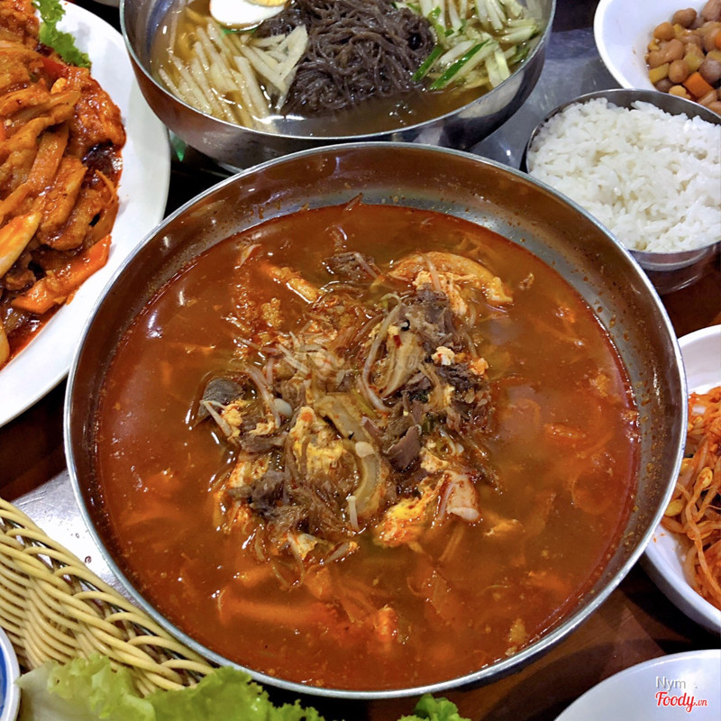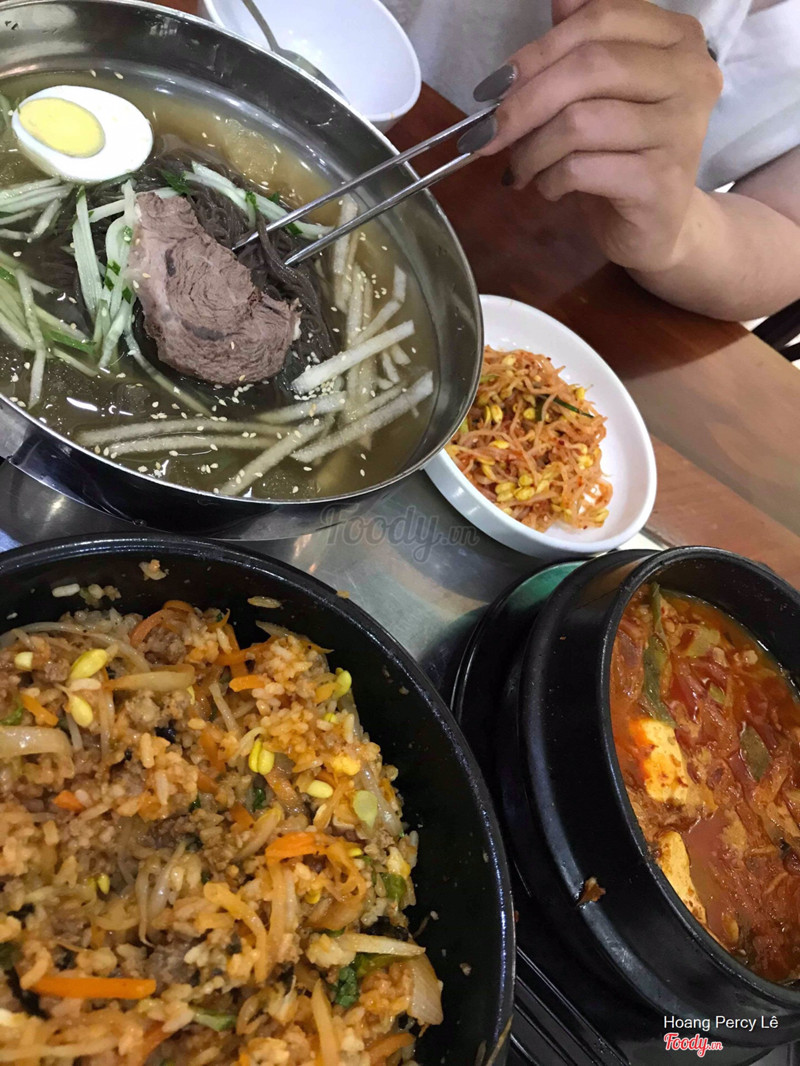 8.4Đồ Hàn Quốc chuẩn vịDo gần nhà nên hay qua đây ăn. Chủ quán người Hàn cũng khá lớn tuổi, nhân viên trẻ trung, lễ phép và phục vụ nhanh nhưng chưa chuyên nghiệp lắm Đồ ăn đặc trưng vị Hàn từ cọng giá đỗ đến đĩa panchan Khi kimbab, teokbukki đã chán ngấy, mình hay ăn canh kim chi, canh bò, mỳ đen và mỳ lạnh. Ngoài ra menu còn có rất nhiều món khác như cá, thịt nướng, canh tương, thịt gà xào, trứng hấp, bạch tuộc,... Tuy nhiên lại không có món yêu thích của mình: Tangsuyuk (Thịt rán chua ngọt) :((( Món nào cũng nhiều luôn :))) rút kinh nghiệm sau vài lần đi ăn là 2 người chỉ gọi 2 món, thường là 1 mỳ và 1 canh (có kèm bát cơm) là đủ. Có lần canh thịt bò còn k thể ăn hết :((( Đồ ăn khoảng 100-200k/ món. Thường 2 người ăn sẽ hết khoảng 300k. Miễn phí 1 bình nước lọc lạnh ...Xem thêm
