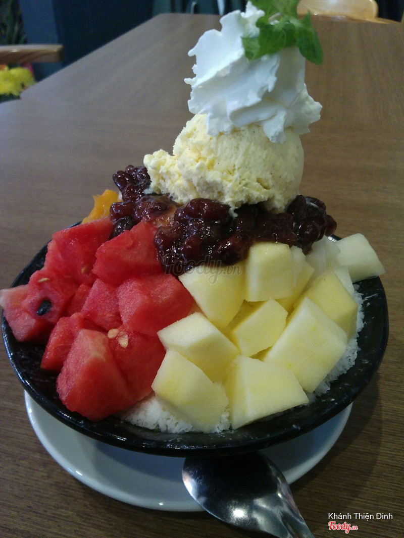 5.8Delio Coffee - Trần Hưng ĐạoTình cờ đi qua rồi ghé vào thôi, thấy cửa hàng có Bingsu cũng gọi thử xem sao dù ko đặt quá nhiều kì vọng lắm. Chất lượng kem tuyết tốt hơn mình mong đợi, kem khá mịn, mùi vị sữa rất nổi bật nhưng lại ko có độ thơm ngậy như 1 số hàng Bingsu của ng Hàn mà mình từng thử. Tổng thể có thể cho là tạm ổn nếu ko phải hoa quả phía trên lớp Bingsu (cụ tỉ là xoài ạ @@) ko bị hỏng gần như hoàn toàn thế này :< chỗ xoài này bị thâm, hỏng nhìn qua cũng thấy rõ luôn ạ. Với giá 80k thì chất lượng như vậy là quá đắt. Không gian tầng 1 cũng nhỏ nhỏ thôi, có cả bàn ngồi phía ngoài cửa. Nhân viên nhanh nhẹn, lễ phép. ...Xem thêm