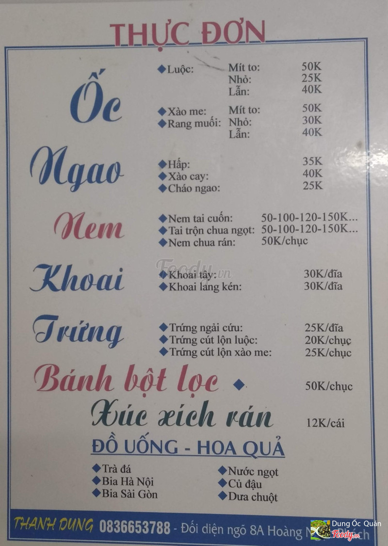 10Dung Ốc - Ăn Vặt Các LoạiVới tình hình dịch hiện tại , Quán sẽ tạm thời chuyển sang hình thức bán hàng online ạ . Khách hàng vui lòng gọi trước cho Quán để Quán có thời gian chuẩn bị đầy đủ các món. Xin chân thành cảm ơn 📢📢📢 Hotline: 0836653788. ...Xem thêm