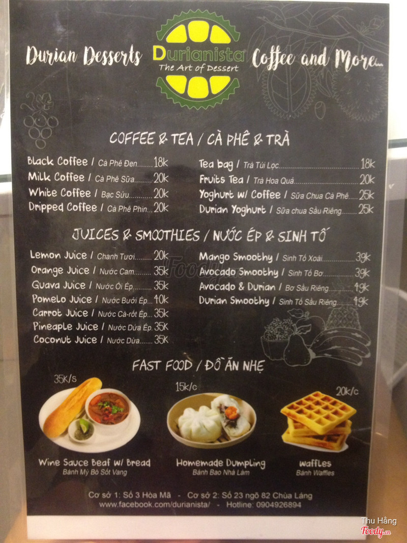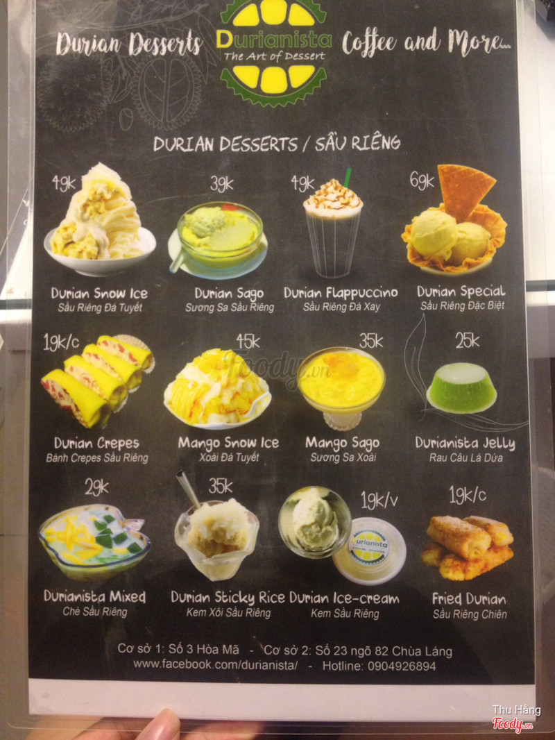 Nơi tuyệt vời cho tín đồ sầu riêng :)) Chè, kem, bánh, crepe... 🍧🍨🍦🍰🌮 Ngoài ra còn có nước ép, chè kem các vị như trà xanh, xoài,... Cửa hàng sáng sủa sạch sẽ nhưng vắng do ở đầu Hoà Mã, đi hơi lười :)) thìa rất đẹp, cảm giác miếng ăn được nâng niu )) sầu riêng tươi ngon chỉ muốn ăn mãi không ngừng. Đúng với cái tên durianista 👍👍👍