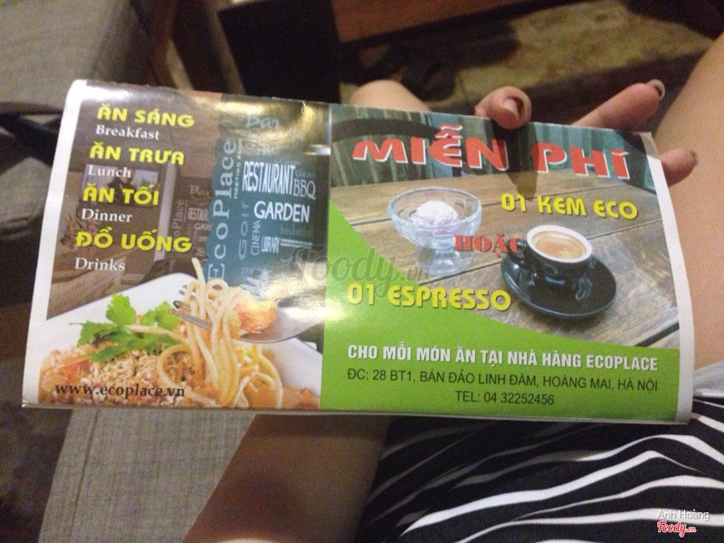 8.0Ecoplace - Coffee & RestaurantĐúng như tên gọi Ecoplace, quán cà phê và nhà hàng là một địa điểm lý tưởng để làm việc mà lại rất hòa mình vào thiên nhiên. Quán nằm trong một tòa biệt thự sâu về phía bán đảo nên đảm bảo được sự yên tĩnh không giống như phía khu Tây Nam hoặc là khu hh Linh Đàm. Ở mỗi tầng lại có một nét riêng. Mình thích ngồi ở khu vực phòng kín nhìn ra có một bể cá nhỏ và ngập tràn màu xanh. Đồ uống ở đây nếu so với không gian như vậy thì cũng không quá đắt ...Xem thêm