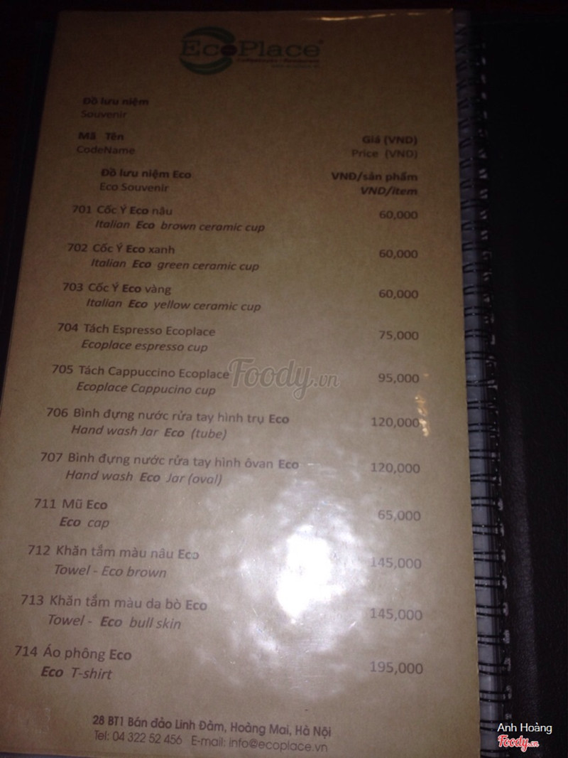 7.4Ecoplace - Không gian đẹpQuán nằm ở bán đảo Linh Đàm, dễ tìm, có chỗ để xe đối diện bên đường. Không gian sang trọng, trang trí đẹp, kết hợp cả cổ điển lẫn hiện đại. Nhân viên nhiệt tình, lịch sự. Đồ uống được, so mức giá chung thì cao hơn chút. Mình thấy món chanh tuyết khá OK, tranh trí đẹp, ngon. ...Xem thêm
