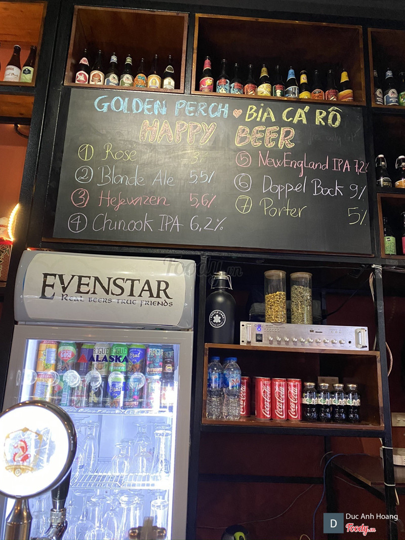 7.4Evenstar Craft Beer PubTừ ngoài đường đi vào ngõ tầm 200m bên tay phải Ô tô thì phải để trong hầm chung cư đối diện Quán có 2 tầng, chủ yếu là bàn cao , có chỗ ở quầy bar Quán chuyên bia thủ công, nổi nhất là loại bia tự nấu thương hiệu “cá rô” golden perch, ngoài ra còn có bia của các thương hiệu trong và ngoài nước Menu đồ nhắm cũng rất đa dạng , đặc biệt có món lạp xưởng cao bằng ăn giống xúc xích ...Xem thêm