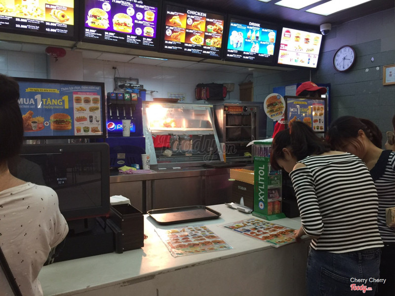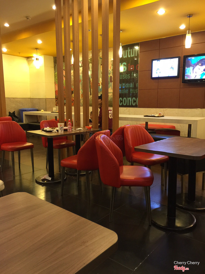 7.0Lotteria - Savico Long BiênVào Savico hôm lễ hội hoa tử đằng (không biết đã nhớ đúng tên chưa), lượn nhiều mỏi chân với cả đúng hôm nắng nóng nên vừa khát lại vừa mệt, vào Lotteria gọi cốc nước ngồi nghỉ lấy sức. Vị trí ở dưới hầm, gần BigC, không biết ở đâu nên phải hỏi bảo vệ. Không gian quán ở đây khá là nhỏ và hôm ý thì cực kỳ đông khách nhưng thích cái là các bạn nhân viên làm đồ cho khách khá nhanh, xếp hàng chờ mua đồ đông lắm nên có thời gian quan sát nhân viên. ...Xem thêm