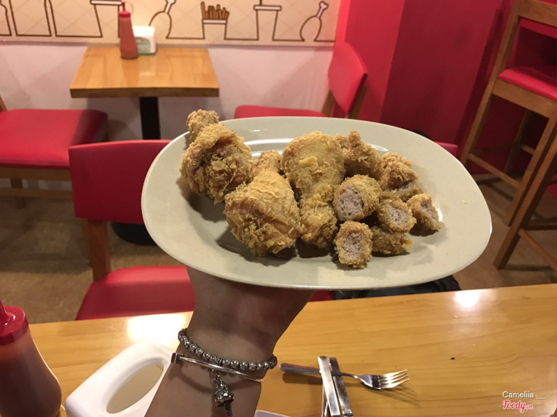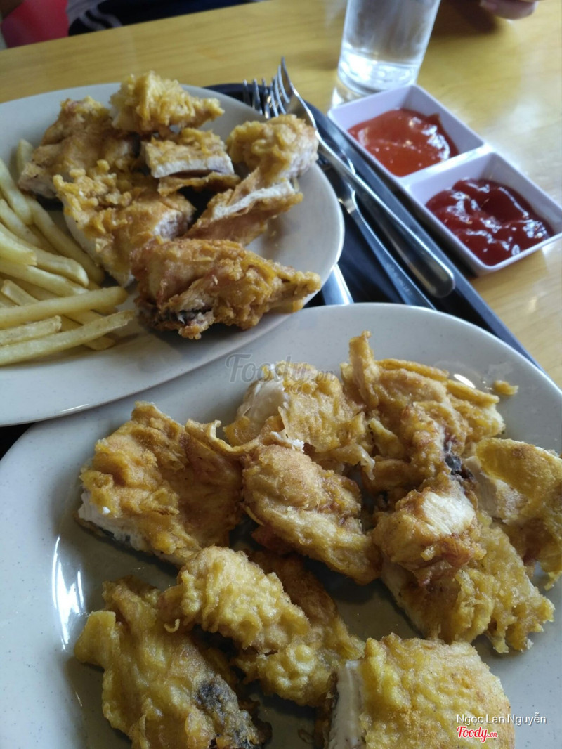 8.8Rất thích!Điểm cộng: - Cực kì vệ sinh! Với mình thì ăn gì cũng phải vệ sinh, mình rất ghét những quán bẩn thỉu, bừa bãi, nấu nướng k đeo găng tay. Ăn ở đây rất sạch sẽ, lúc nào cũng có găng tay để ăn, k có gì để chê. - Nhân viên cực kì thân thiện và mến khách, nhiệt tình vui tính lắm - Gà cực kì ngon, mình đặc biệt thích steak gà giòn. Gia vị thấm sâu, gà mềm, mọng nước, ăn ngon hơn hẳn Lotte hay KFC nhé Điểm trừ: - Không gian khá chật hẹp, nếu quán đông người sẽ rất ồn ào - Giá cả có vẻ chưa hợp lý, nhất là món râu mực chiên. Tuy nhiên thì rất vệ sinh, tươi ngon nên mình cũng thấy k có vđề gì lắm. Đã ăn ở đây n lần và sẽ còn quay lại nhiều :3 ...Xem thêm