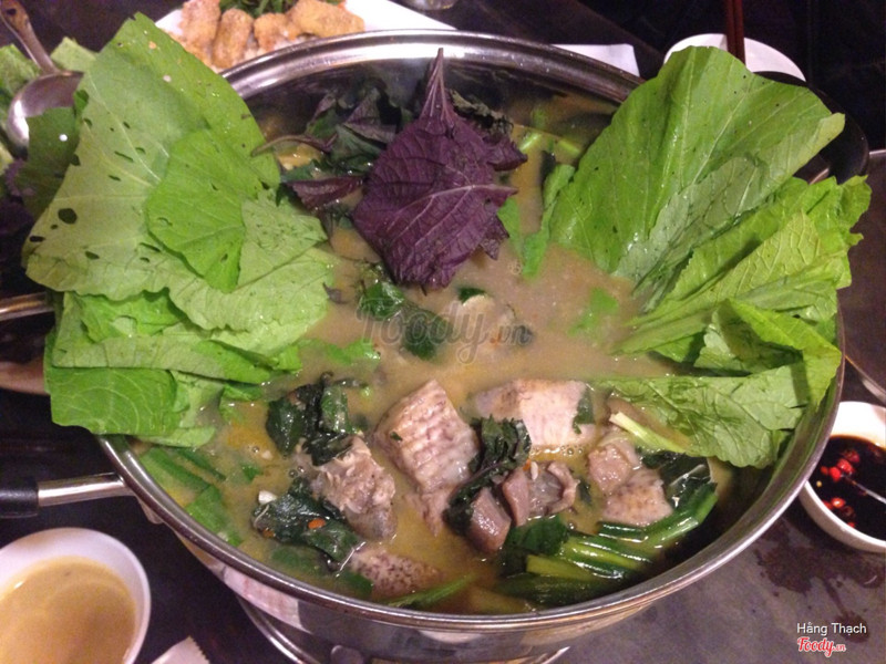 8.6Ghềnh Restaurant - Lê Duẩncảm thấy tiếc cho một quán rộng rãi ở khu vực trung tâm mà ít được chú trọng Được chia làm 4 khu riêng biệt Ở ngay ngoài cửa phục vụ cho các bữa tiệc gia đình Bên trong mình đặc biệt thích khu hầm rượu,ấm cúng Khu trên gác là phòng Vip với phụ phí 5% Ngoài ra còn có khu dành cho tổ chức party có thể chứa đến 200ng với view bao quát được toàn cảnh Các món mình thử chế biến đều hợp với khẩu vị của đại đa số Khai vị với salad bò :không giống như những quán mình hay ăn.Bò ở đây được chiên phủ sốt mè,trộn cùng rau với vị chua vừa đủ,miếng bò vẫn giữ độ giòn,không bị nhũn khi rưới sốt Vịt sốt cam :mang hơi hướng Á nhiều hơn.Miếng vịt thích nhất là bao ngoài với cốm sau sốt cam.Ăn miếng vịt kèm miếng cam nó cứ vui mồm,ăn được nhiều lắm Cuối cùng là lẩu dê,nước lẩu ngon,mùi thì bạn mình kêu nồng.Mình thì thích,nó thật vị hơn.Dê đc cho sẵn trong nồi nhưng lại ko hề dai.Ăn miếng thịt kèm tía tô với gắp bún là đúng điệu. Tiếc là chao ko có ngon lắm Xét trên tổng thể mình thấy ăn ở đây hợp lý nhất là đi đông.Menu phong phú,nhiều món lạ nhất là các món về hải sản.Sắp tất niên r,chẳg tội gì không đặt một bàn nhỉ ...Xem thêm