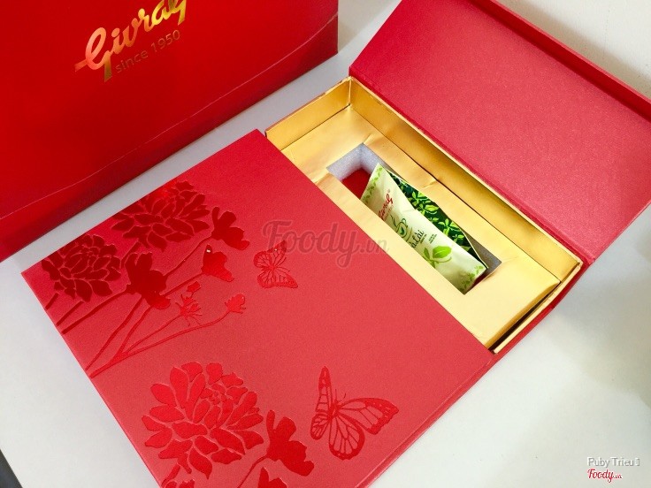 7.8Givral Cafe - Láng HạAnh mình được người quen giới thiệu mua bánh trung thu của Givral nên anh cũng thử mua một ít về để làm quà biếu. Nhìn hình thức hộp cũng khá đẹp mắt với những gam màu ấm như đỏ, cam trông rất lịch sự nữa. Bên trong hộp ngoài ngăn đựng bánh, có thêm 1 ngăn đựng túi trà lài của Givral để pha và thưởng cùng bánh cho đỡ ngấy. Về bánh thì mình mới thử được mấy vị, có vị gà quay ngon nhưng nhìn nhân bên trong cứ giống giống với nhân thập cẩm nên hơi khó phân biệt. Vị thập cẩm bên trong có cả hạt điều ăn cũng khá bùi, vị dừa hạt dưa thì mình thấy mùi cứ khó ăn kiểu gì ý, không ưng :( Giá mình thấy có vẻ hơi cao so với chất lượng. ...Xem thêm