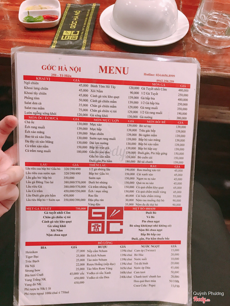 6.2Góc Hà Nội - Ẩm Thực Hà ThànhLần đầu biết góc HN là lúc quán mới mở trên Ô chợ Dừa (hôm ý ăn xong về đau bụng nên sợ luôn) mãi đến hôm rồi ck đi ăn về khen nên ra thử lần nữa nhưng là ở Tô Hiệu. Ăn tối thứ 6 nên quán rất đông khách. Được cái nv nhiệt tình, đồ ăn mang lên nhanh. 3 ng lớn gọi 1 khoai lang chiên, rau su su xào, 1 ếch xào măng thêm nổi lẩu riêu cua sườn sụn, đồ uống hết tầm 700k. Có điều thịt bò nhúng lẩu cảm giác là thịt trâu ấn độ thì đúng hơn. ...Xem thêm