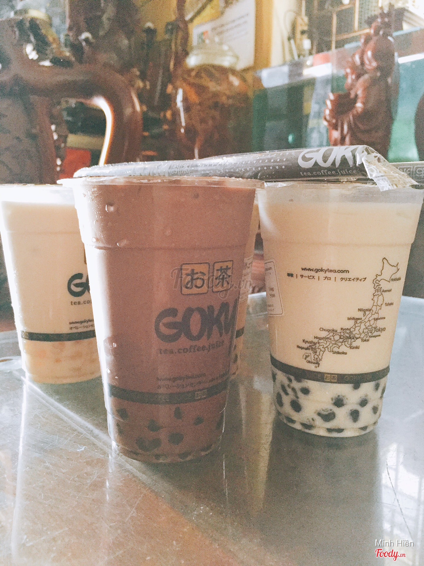Đây là lần t2 ra goky ở nguyễn văn cừ roi ạ! Lần đầu tiên ra đúng lúc đang chạy chương trình mua một tặng một đông dã man xếp hàng dài ra tận vỉa hè luôn đợt đấy e gọi tà sữa goky mà ngọt dã man luonnn í nhưng ksao vẫn thích. Lần này e gọi trà xanh kem mặn màu tuy không bắt mắt lắm nhưng vị xanh chất đúng kiểu e thích luôn kem thì mặn mặn ngậy ngậy hợp luôn với puding socola mà e od hên ghê!!! Mà nhân viên cũng tốt cực kì luôn hnay quán vắng chỉ có mỗi hai đứa ngồi hát hò nên anh chị đã vặn nhỏ nhạc cho em để có thể thực hiện mấy clip hát hò nchung là siêu dễ thương siêu đáng yêu. Mặc dù lúc đầu cũng có mặc cảm với quán tại thấy mn bảo quán ở nvc ko ngon bằng những chỗ khác nhưng sau hnay đã htoan là ý nghĩ khác yêu trà sữa yêu cả nvien quán luonnn❤️❤️❤️❤️❤️