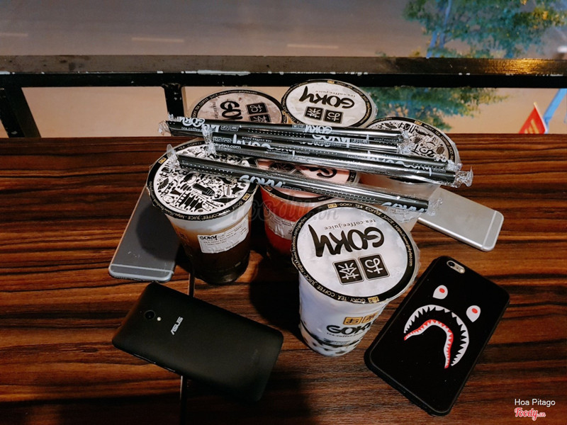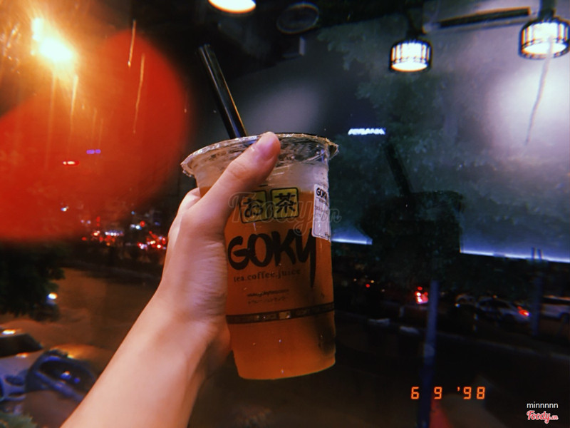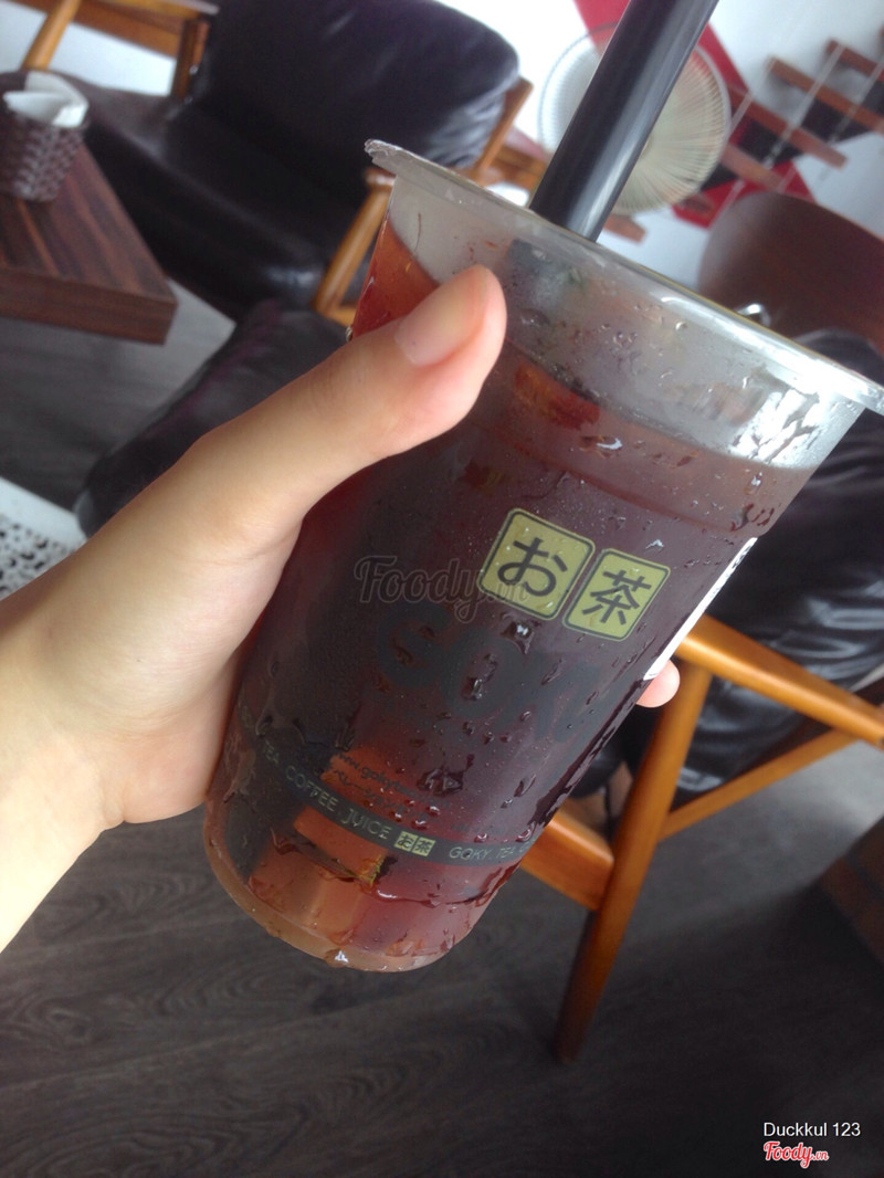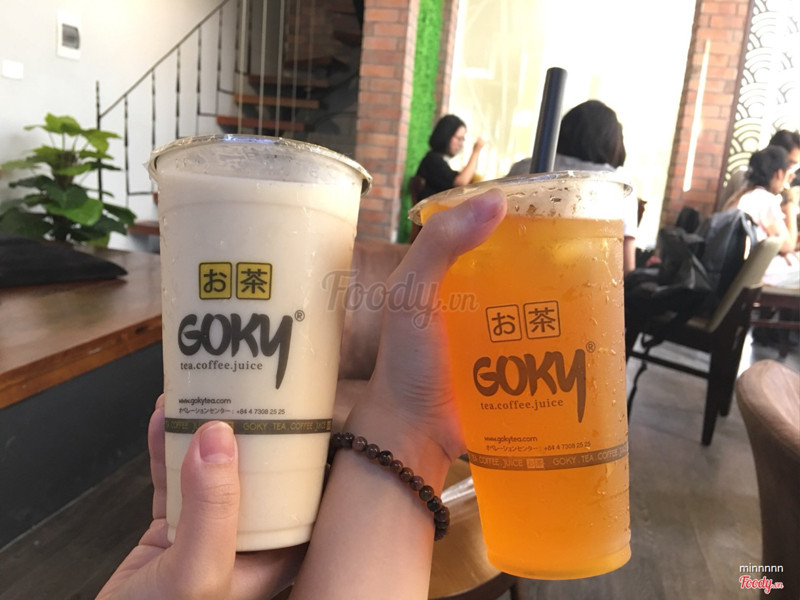 5.4Goky - Tea, Coffee & Juice - Ô Chợ DừaCuối tuần trc ra goky ngồi uống thử nhưng quên mất không viết chút review. Thật sự goky ấn tượng ở cách trang trí vs view quán, nhìn n lạ lạ hay thôi chứ trà sữa mình thấy cũng tạm Hôm đấy mình order 5 cốc dc tặng 1c nhờ có jamja, từng vị thì mình thấy: sữa chua dâu khá chua, trà nhài kem chesse uốnh tạm dc, kem chesse k ngon lắm, trà ô long thì nhạt toẹt, trà vải thì uống cũng tàm tạm, và 1 chanh leo gì đó nữa k nhớ tên nhưng uống cũng hơi chua, mình chọn chocolate tokyo ở cốc dc tặng, uống khá nhất trong 6 cốc. Giá cả cũng ngang vs dingtea, vừa tầm. ...Xem thêm