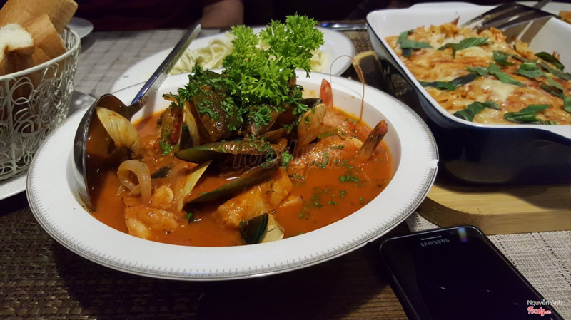 9.0quán ngonQuán ăn rất ngon, vừa miệng. một xuất ăn rất to, giá hợp lý không đắt lắm. các bạn nhân viên nhiệt tình, nhanh nhẹn, đồ ăn lên nóng sốt. mình gọi súp bí đỏ siêu ngon luôn ý, bé nhà mình 2 tuổi thích mê, mình gọi mỳ ý tôm, hải sản sanfransisco thì phải, mỳ ý phô mai, ăn no luôn, mình nghĩ những món hải sản ở đây sẽ cay nên bạn nào không ăn cay được lưu ý để bếp giảm cay nhé. mình đặt bàn qua table now được giảm 10% và mã giảm giá 30k delivery now. hôm đấy ăn hết 500k nói chung là rất hài lòng ...View more