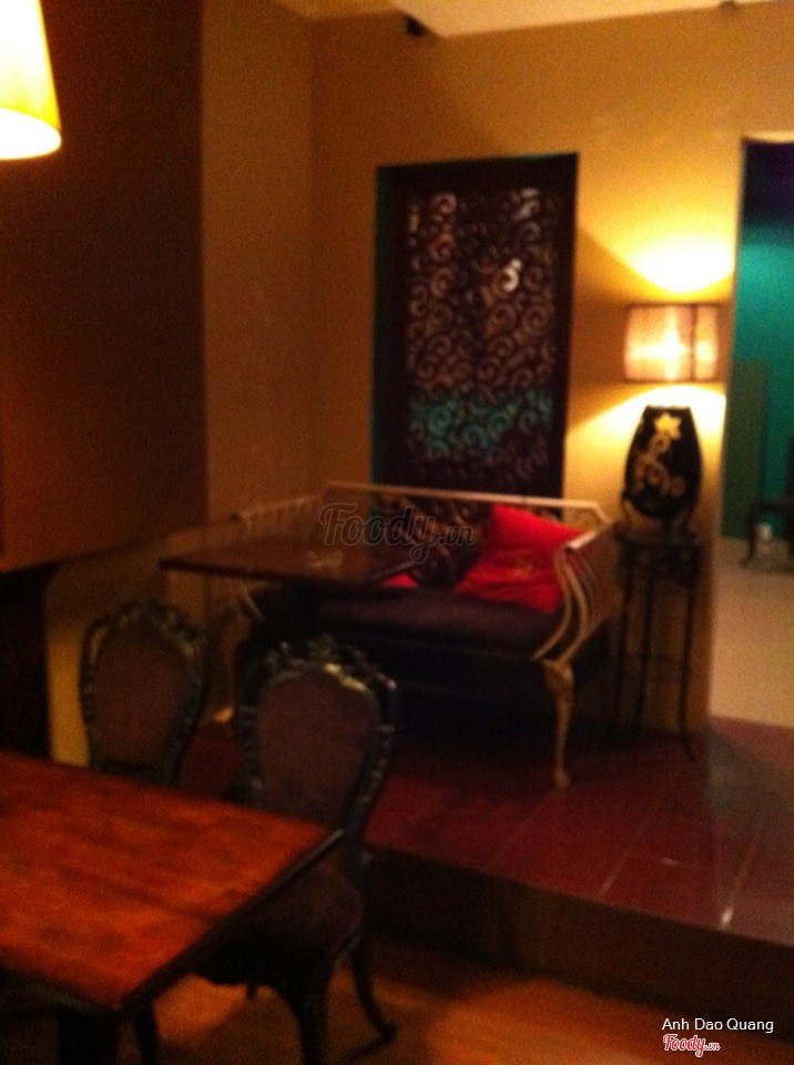 7.4Không gian mới mẻQuán nằm đối diện đại sứ quán Trung Quốc, vị trí khá đẹp và yên tĩnh. Nội thất quán khá cầu kỳ đem lại cảm giác đặc trưng và ấm cúng. Phục vụ khá chu đáo. Đồ uống có tên gọi lạ tai và cũng lạ miệng. Nói chung là khá hay để trò chuyện hoặc chờ lấy visa Nhật hoặc Trung Quốc. ...Xem thêm