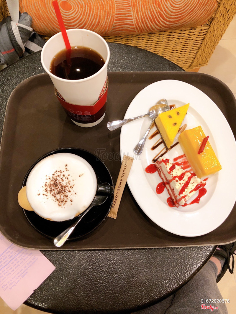 Năm gần đây mình bị nghiện highland hơn tất cả các loại trà sữa khác dù công ty cũ highland ở ngay dưới chân toà nhà cũng ko thèm đi. Tất cả bất đầu từ khi có món trà sen vàng và bánh mouse pho mai chanh dây. Ở highland lúc nào cũng có không gian rất dễ chịu, thơm mùi cafe, đặc biệt highland ngọc khánh này không quá đông, ngồi làm việc hay thư giãn thì rất thoải mái. + trà sen vàng: thơm vị trà lắm luôn, sen bùi bùi, có thêm mấy hạt trông như hạt lựu dỏ đỏ bên trên, ăn giống trân châu mà giòn giòn, món mình hay gọi nhất. +capuchino: cafe của highland thì thơm và ngon khỏi nói rùi. + trà thanh đào, trà sữa đào: cũng ngon mà mình ko thích mấy cái cứ chua chua ngọt ngọt vậy. còn lại các đồ uống khác hơi ngọt với mình, mình ko hay uống lắm nên ko nhận xét. Bánh ở highland rất ngon. Nhiều lựa chọn, có bánh mới ra là mouse xoài đào với mouse yougurt dâu mà mình thấy phô mai chanh dây vẫn là ngon nhứtt ...Xem thêm