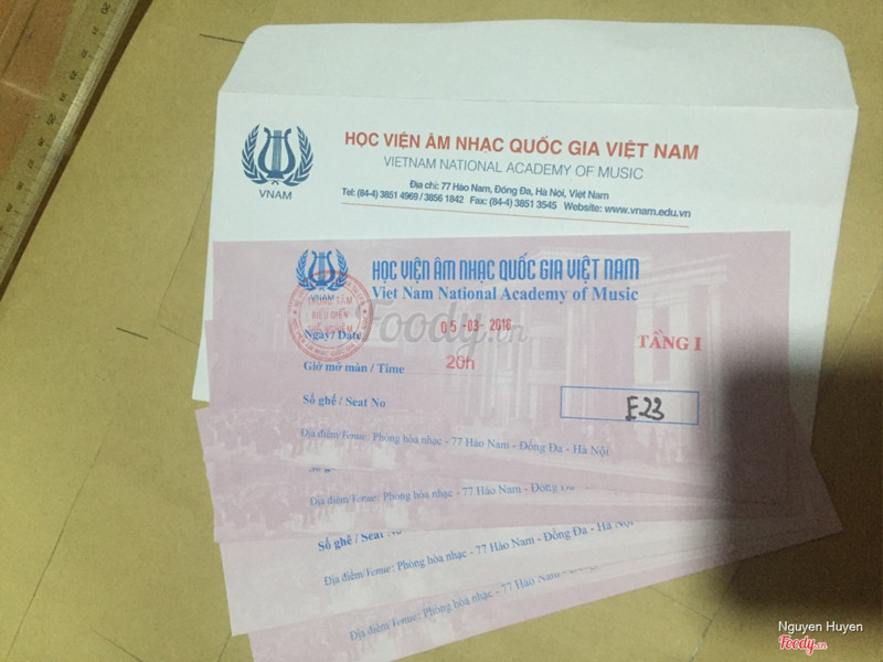 7.6Học Viện Âm Nhạc Quốc Gia Việt NamĐược bạn cho vé đi xem buổi hòa nhạc ở Học Viện Âm Nhạc Quốc Gia Việt Nam thế là mấy chị em rủ nhau đi xem hòa nhạc. Phòng hòa nhạc Học viện Âm nhạc Quốc gia Việt Nam có sức chứa khoảng 350 chỗ được trang bị hệ thống ánh sáng, âm thanh chuyên nghiệp, phòng thu thanh chất lượng cao, là nơi lý tưởng để tổ chức các hoạt động âm nhạc, các cuộc hội thảo, hội nghị. Không gian lịch sự sang trọng, khán phòng đẹp với các thiết bị hiện đại. Hôm mình xem là buổi Hòa nhạc do nhạc trưởng Clyde Mitchell và dàn giao hưởng Hà Nội biểu diễn. Ngoài ra có sự tham gia của Viviana Guzman biểu diễn độc tấu. Buổi hòa nhạc hay và thành công tốt đẹp. Lễ tân phục vụ buổi biểu diễn chu đáo, còn có in cả nội dung cũng như tờ rơi về buổi Concert ...Xem thêm