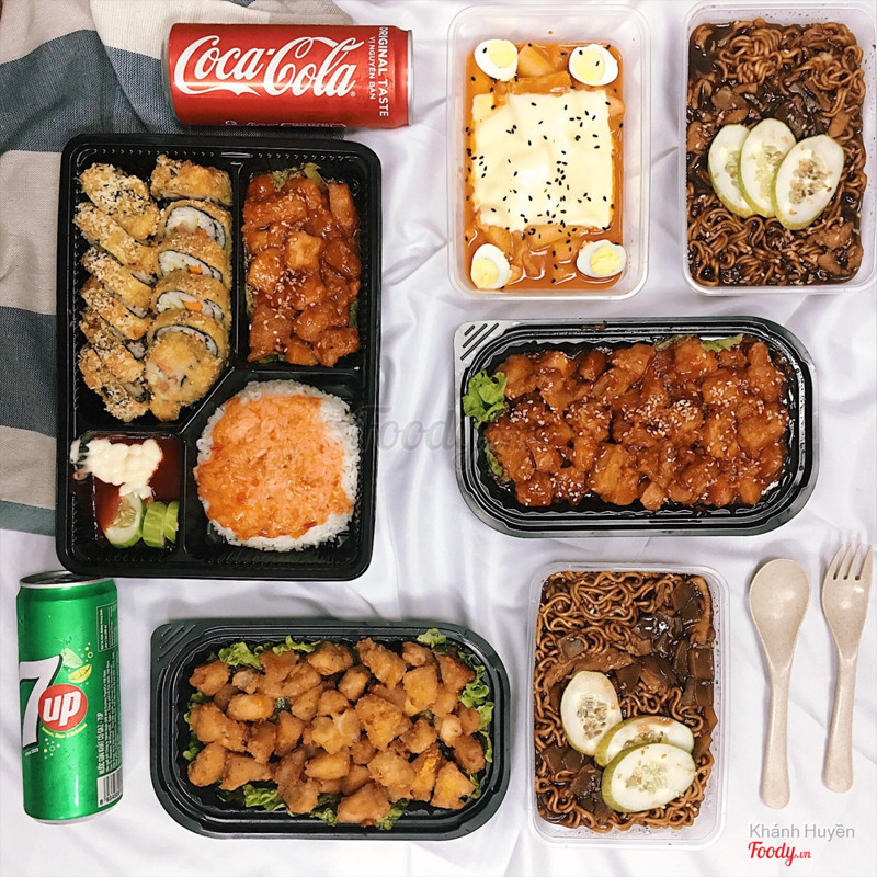 7.2HT.Food - Shop OnlineBữa trưa văn phòng :3 Mới kiếm được quán đồ Hàn ship tận nơi nên chị em gọi thử coi sao, không biết có phải do chụp lâu quá xong mới được ăn hay không mà thấy đồ ko ngon lắm. Gà rất khô, ăn hơi rời rạc, lại còn là ức gà nữa nên ko có độ mọng và mướt. Tok thì ngon, dù nguội vẫn mềm dẻo. Cơm ok và đầy đặn nhưng gimbab ít sốt quá chấm chẳng đã gì cả. Mỳ đen cũng okie nhé, hơi nhạt và again, cũng ít sốt. Giá cả vừa phải, lần sau chắc sẽ ăn nóng cho ngon. ...Xem thêm