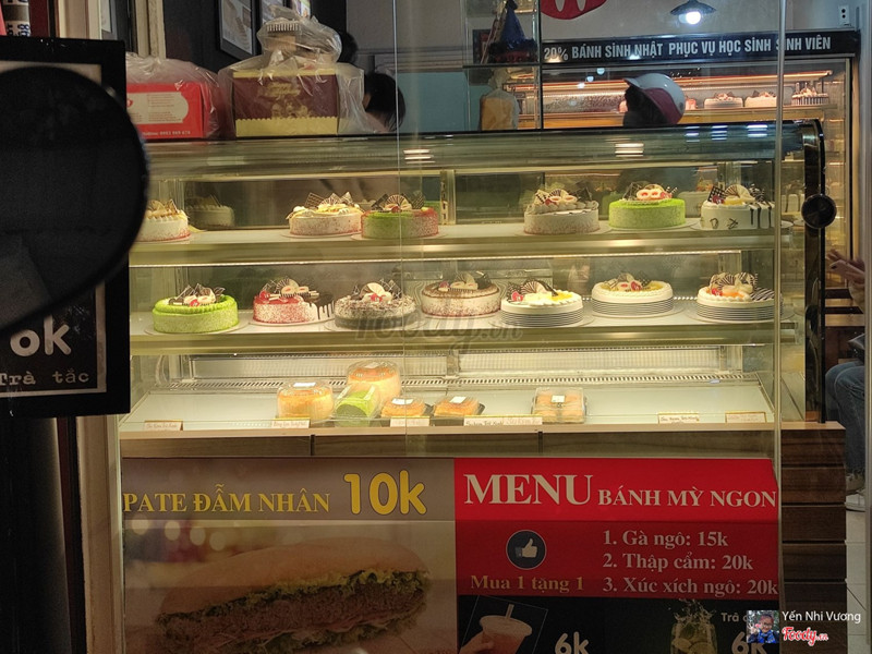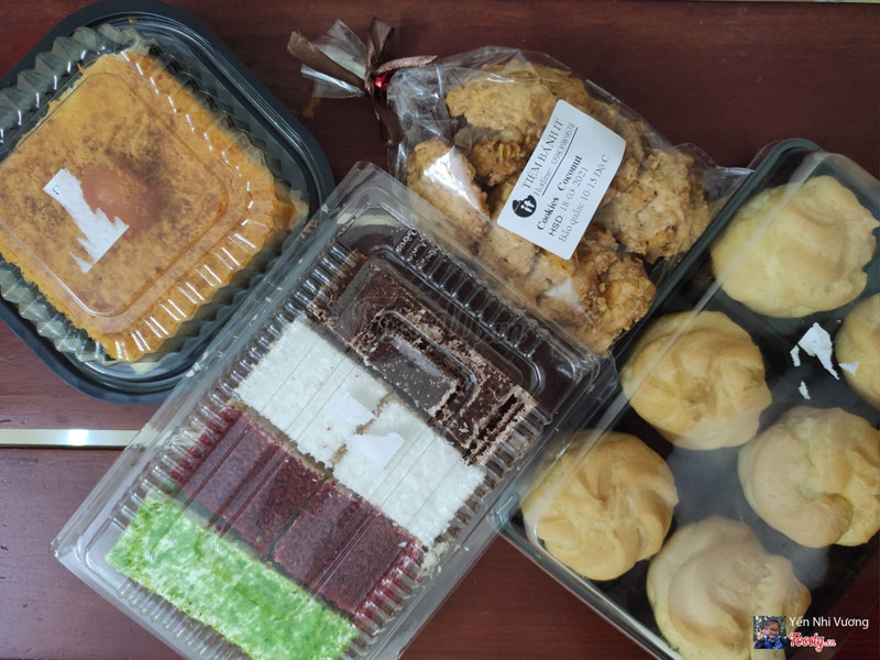 Tiệm bánh nằm gần Trường ĐH Quốc gia, gần về cuối*** giá cả ở đây cực kỳ dễ chịu. Nhờ đọc review của các bạn trước mà mình biết thứ 4 tiệm có khuyến mãi 50% cho các loại bánh sinh nhật :))) Bánh ở đây cỡ 18cm có giá 250k và giảm 50% còn 125k thôi, nhưng mình chẳng có bụng mà ăn hết ấy nên không mua. Tuy nhiên thì tiệm còn có rất nhiều bánh cắt, bánh ngọt nhỏ và su kem giá cũng phải chăng lắm, ngoài ra bán cả bánh mì kẹp nhân mặn. Khi mình đến tiệm khá đông khách, có vẻ là luôn có khách đều. Mình chọn bông lan sốt ruốc cay 35k, su kem trà xanh 30k, bánh ngọt mix vị 25k (gồm 4 vị là trà xanh, tiramisu, red velvet và dừa) và túi cookies 30k. Nhìn chung bánh nào cũng ngon, hương vị kiểu bình dân dễ ăn và giá cả hợp lý, đầy đặn nữa. Hộp bông lan có 1 quả trứng mặn bên trên thôi nhưng cốt bánh mềm, lớp sốt giữa bánh béo ngậy và lớp ruốc cay bông tơi bên trên bánh ăn đều vừa miệng. Hộp bánh mix vị thì kem topping hơi ngấy một chút nhưng cũng phân biệt được các vị, dễ ăn. Su kem trà xanh 6 chiếc 30k nghe có vẻ hơi đắt (vì bình thường chỉ 15-20k/hộp thôi) nhưng su kem này khá to, bên trong ngập nhân kem luôn đáng tiền phết đó ạ. Túi cookies thì mình đem tặng nên chưa nếm thử được, nhưng có lẽ cũng ngon :))) Nhân viên lễ phép và cẩn thận, tư vấn đầy đủ về chương trình khuyến mãi cho khách. Ở đây thanh toán chuyển khoản cũng được nhé. Chắc chắn lúc nghèo mình sẽ đóng họ bánh trái ở tiệm này rồi :))) ...Xem thêm