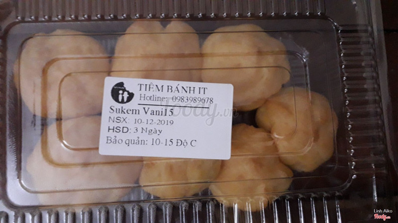 Tiệm bánh IT thường có khuyến mại giảm 50% vào mỗi thứ 4 hàng tuần, bánh ở đây thiên về bánh kem, có đa dạng các loại bánh như bánh mousse, bánh cupcake, bánh cuộn kem tươi, bánh sinh nhật. Ngoài ra, còn có các loại đồ uống như trà sữa, nước ép hoa quả, coffee, sữa chua. Bánh su kem đang giảm từ 15k xuống còn 9k nên mua 1 hộp về ăn thử, 1 hộp có 7 chiếc bánh, cắn một miếng là đầy ứ kem luôn, kem có vị ngọt vừa phải, không bị ngấy,vỏ bánh mỏng. Đặc biệt, ăn lúc lạnh sẽ ngon hơn nhoa. ...Xem thêm