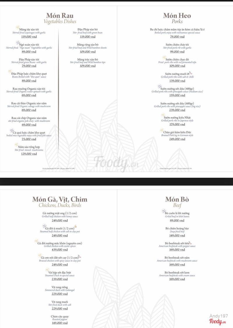 9.6Món ăn ngon, không gian ấn tượngMình thích nhất gà bóp rau má, thịt gà rai rai zòn zòn kết hợp vị chua cay rất ngon, ăn một lần nhớ mãi chỉ muốn ăn thêm. Còn món chả trai cũng rất ngon, lạ, mình chưa từng đc ăn. Không gian thiết kế đơn giản nhưng đẹp, nhẹ nhàng và tinh tế, tạo cảm giác ấm cúng thoải mái. Nhà mình đi cả gia đình ăn thêm nồi lẩu chim câu với nấm, thịt chim rất ngon, rau tươi và sạch. Sẽ còn quay lại trong thời gian tới! ...Xem thêm