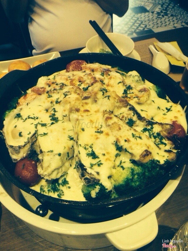 8.4Kái Bếp- gà, bò, hải sản phô maiiiiii!!!!Hôm trc mình có đi đến đây ăn cùng với mấy đứa bạn. Quán có 3 tầng và khá rộng, decor đẹp, có cả khu ngoài trời rồi giếng trời nhìn yêu dã man í. Ở trên phố mà kiếm dc quán to ntn mình thấy cũng khá ấn tượng. Chỗ để xe trc mặt lại rộng rãi thoải mái nữa. Thêm 1 điểm cộng to đùng Hôm mình đi là gọi chảo hải sản phô mai, chảo bò và chảo mix bò với gà, cả cá tầm nữa. Thịt bò mềm, hơi tái chút nên ăn rất ngọt. Bạn nào k muốn ăn tái thì để chín cũng dc, n0 riêng mình mình thích tái :)))) Nước sốt cũng đặc biệt, ăn kèm bánh mì ngon hết xảy. CHảo hải sản thì có hàu, mưc, bạch tuộc, tôm.... Chảo hải sản to dã man. 2 ng chắc ăn k hết qá, khá nhiều phô mai nữa. MÌnh là tín đồ cheese ròi nên cực khoái món này. Ngoài ra ở mỗi chảo còn có các loại rau củ ăn kèm cho đỡ ngấy : cà chua, hành tây.... Các món còn có sốt chẩm riêng nữa. Nói chung là mình thấy các món ở đây ăn đều khá ổn, đậm đà vừa miệng, nc sốt cũng ngon. địa chỉ cho các bạn nè: 38 Hàm Long, Hoàn Kiếm ...Xem thêm