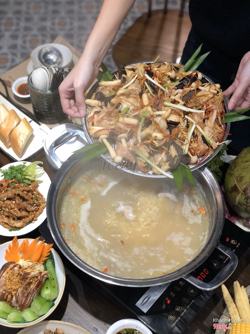 7.2Lẩu hơi gàMột địa chỉ ăn khá yêu thích của gia đình mình. Bình thường hay ăn cơm gà thôi nay đi đông nên thử được nhiều món lại có cả lẩu hơi gà nè. Lẩu này hay lắm, bên dưới là nước dùng gà mình xối chảy xuống còn phía trên là thịt gà lọc xương ướp sẵn ròii cứ thế hơi bốc lên là ăn ngon thôi. Còn bên dưới sẽ thả vào gạo trong nước dùng bếp nóng gạo thành cháo mình ăn cùng nhen. Thịt gà ở đây được nuôi nên chăc ngọt chuẩn gà ta. Giá hơi mắc tẹo mà ngon nè! ...Xem thêm