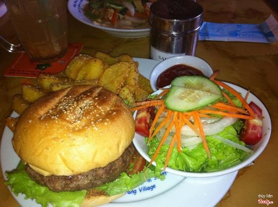 7.6Các món ăn cực kỳ ngon, ngoại trừ saladMình chỉ có thể nói được một câu thôi: quá ngon. Burger, đặc biệt là burger bò, có lẽ là ngon nhất Hà Nội tính đến thời điểm này. Burger ở đây chắc phải có kích cỡ gấp đôi những chỗ khác mất, và nhân của nó thì cũng nhiều, đầy ứ luôn, nhìn không đã muốn nhỏ dãi ra rồi. Vỏ bánh thơm, nhân vừa vặn, thịt mềm, sốt đặc biệt. Khoai chiên và phở chiên cũng ngon lắm luôn, giòn tan, cắn vào không bị kiểu chảy dầu ra. Salad ở đây cho hơi ít, mình ghét cái loại chỉ gồm toàn hành tây với ớt ngọt lắm, ăn vừa hăng vừa chẳng ra sao. ...Xem thêm