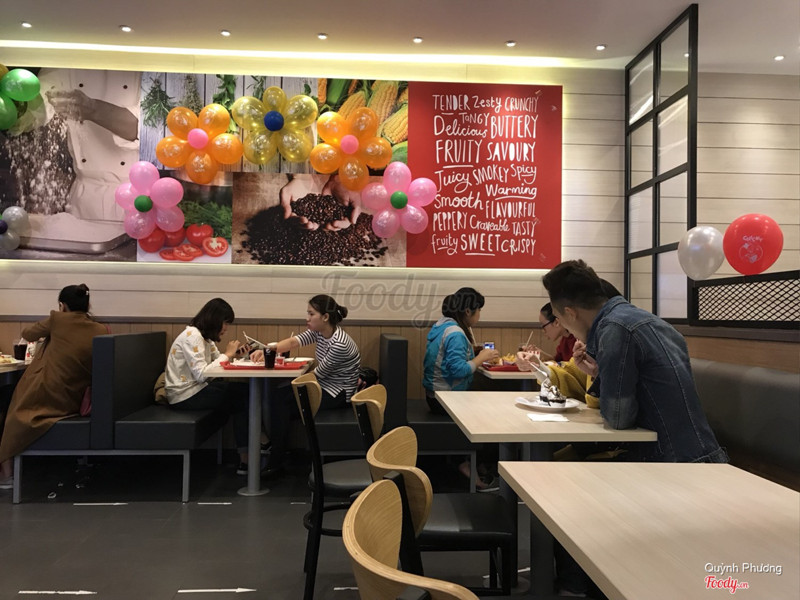 7.2KachiatoQuán nằm ở hầm của tòa nhà, gần bigC và Dingtea. Đến khổ, hôm cho trẻ con đi chơi ở tầng 6, muốn ăn kfc mah lượn khắp tầng 5 ko thấy, đi thang cuốn xuống tận tầng 2 mới nhớ ra nó ở tầng hầm. Nhục thật ý. Quán có không gian mở, thoáng. Nhân viên trẻ và nhiệt tình. Bạn quản lý cao gầy đẹp zai có nụ cười tỏa nắng làm bà mẹ bỉm sữa 2 con mát hết cả lòng )). Đồ ăn ra nhanh, chất lượng thì như bao quán kfc khác thôi nhưng dạo nì có món đồ uống mới là kachiato: hồng trà kem sữa 29k. Khi uống tách thì lớp trà rất đậm vị: thơm, chát và ngọt vừa; lớp kem có mùi sữa (tất nhiên rùi) và hơi mặn. Khi quấy lên khá ngon, vẫn còn mùi vị trà nhưng bớt chát mà ngậy hơn, nhưng nó sẽ bị RẤT NHẠT nếu bạn là ng hảo ngọt. Túm lại uống ổn, sẽ là 1 gợi ý hay ho khi tự dưng đến kfc mah k muốn uống nước có ga mah cũng k muốn uống nc lọc. ...Xem thêm