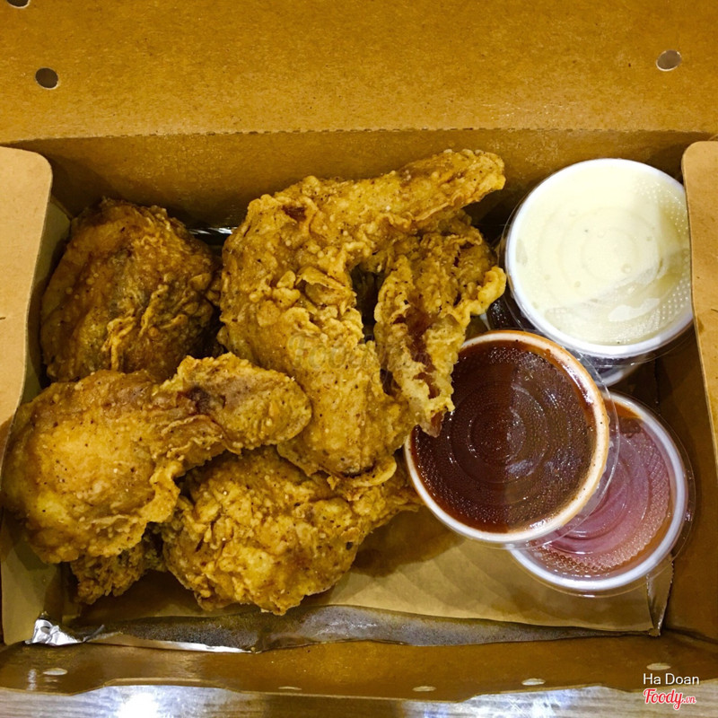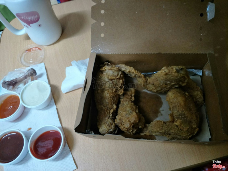 9.4Ngon, giá cả hợp lýGà thơm, giòn, sốt chấm với gà cực kì hợp, đậm đà, không bị ngấy. Sốt béchamel chua ngậy, hơi có vị cheese thì phải, ăn lạ miệng. Còn sốt bbq chua chua ngọt ngọt, ăn cuốn phết :))) mình thích bbq hơn. Đóng gói cẩn thận, giao đến tay mình gà vẫn còn ấm và không bị ỉu. Combo 135k có 6 miếng với 1 chai coca, khá hợp lý. Nói chung là ưng nhất trong các quán gà online mình từng ăn, chắc là lại đóng họ dài dài ở đây rồi :3 ...Xem thêm