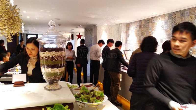 8.4Tuyệt !!!!Mới khám phá dc chỗ ăn trưa sang chảnh, lâu lâu sang một bữa với đồng nghiệp hay tiếp khách quá ổn luôn. Giá khá rẻ ở phố cổ với không gian như thế này. Buffet nên ăn thoải mái, có sushi, mỳ Ý, pizza, salad và rất nhiều món Việt Nam, tha hồ luôn ý. Tráng miệng có chè, bánh ngọt, hoa quả đa dạng, mình thử 2 loại chè đều thấy ngon :)) Điểm ưng nhất ở đây là về không gian và thái độ phục vụ, rất dễ chịu. Không gian nhã nhặn, ánh sáng vừa đủ chứ ko chói lóa quá, cảm giác đi ăn buffet nhưng vẫn rất riêng tư ấy. Nhân viên lịch sự, lễ phép, khá nhanh nhẹn. Ăn xong xuống tầng 1 có quầy bar đó, nhiều người ko biết ăn xong đi về, quá phí :)) Trên tầng 8 còn có cả phòng tập gym và bể bơi ngoài trời cơ, xịn cực!! ...Xem thêm