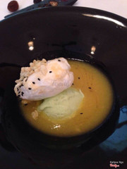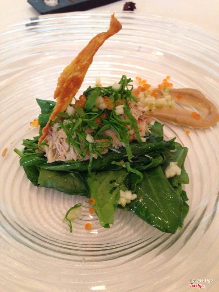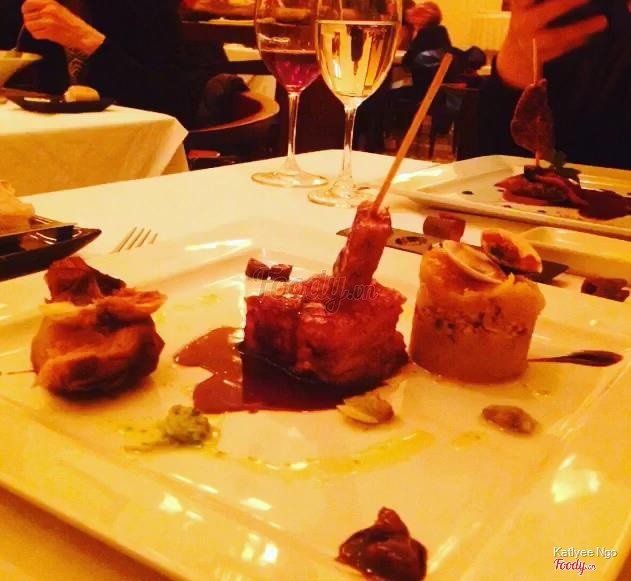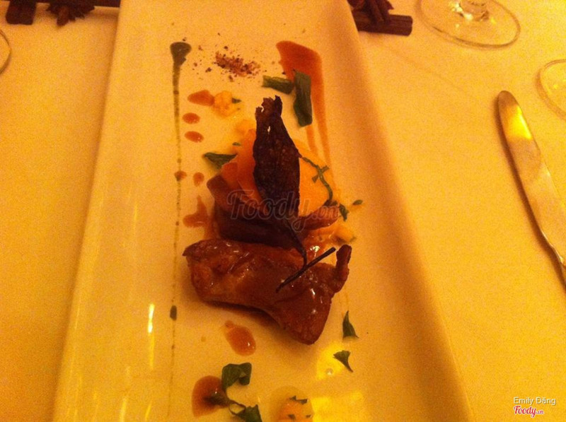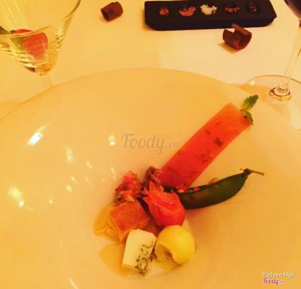 7.6La VerticaleTrở lại với La Verticale khi m có 1 bữa tiệc ở đây ,vẫn sực nức thơm nồng mùi gia vị khi bước vào vô cùng dễ chịu.Thực sự là thay đổi cách nhìn của m trước đây về các món ăn của nhà hàng khi gặp chef Didier corlou nghe ô trình bày về các món ăn,tình yêu của ô v VN để sáng tạo ra nhiều món giao thoa giữa ẩm thực Pháp v VN & thưởng thức nó.Phải nói mỗi 1 món ăn vô cùng công phu , vô cùng đẹp mắt :) M có cơ hội thưởng thức cực kỳ nhiều món khoảng hơn 20 món các loại, ko đếm hết vì quá nhiều món, đương nhiên dù là đầu bếp lâu năm nhưng ko phải món nào m cũng hài lòng & cho là ngon,có thể món đó m ko hợp hoặc có thể nó ko ngon thật :)) Các món m thưởng thức có 1 số trong menu còn 1 số ko có trong menu do chef giới thiệu món mới.M ko đánh giá hết tất cả chỉ ghi 1 số món m thấy ngon Khai vị : Sò điệp nhúng nước ép rong biển ;hàu nướng hạnh nhân ; súp đậu tuyết cá đối Hàu nướng hạnh nhân khá là thơm ngon bùi bùi ,súp ngon ăn k bị ngấy như súp kem m thg ăn. Món chính: Các bạn nên thử món gan ngỗng khi đến đây có rất nhiều món từ gan ngỗng .Ở đây có cả phở tôm hùm với phở gan ngỗng ăn khá lạ miệng :) Ganache gan ngỗng & gan ngỗng bơ tỏi nướng sốt táo ăn thơm,mềm mịn như caramel,gan ngỗng cuộn ăn giống kiểu nem cuốn chấm nc mắm :)) Bánh sò điệp với cam quýt & nấm truffle : nghe bánh tg tráng miệng nhưng nó là món mặn giống kiểi bánh choux mặn vậy. Cá ngừ đá muối Tôm sốt cây đại hoàng Cá tuyết sốt trà xanh trong lá chuối & nc cốt me Vịt nấu hoa quả đỏ Sò điệp tartare với ngao Mỗi món có chút nên ăn thử mấy chục món m mới thấy no như ăn buffet 😂 Tráng miệng : Món tráng miệng ở đây ngon và lạ , lạ nhất là cái kem cà ri với xoài nấu gạo nếp nước dừa :)) Ice-cream & sorbert Kem cháy quả bơ Bánh cam kem sả Tuy là có món ngon , có món ko nhưng xứng đáng để các bạn đến đây thử vì mỗi món đều rất nhiều công đoạn cầu kỳ, trình bày tinh tế. ...Xem thêm