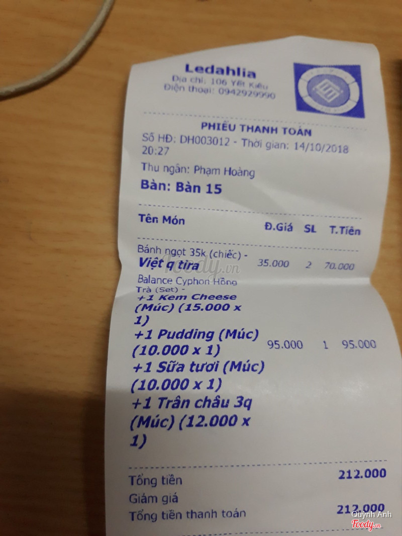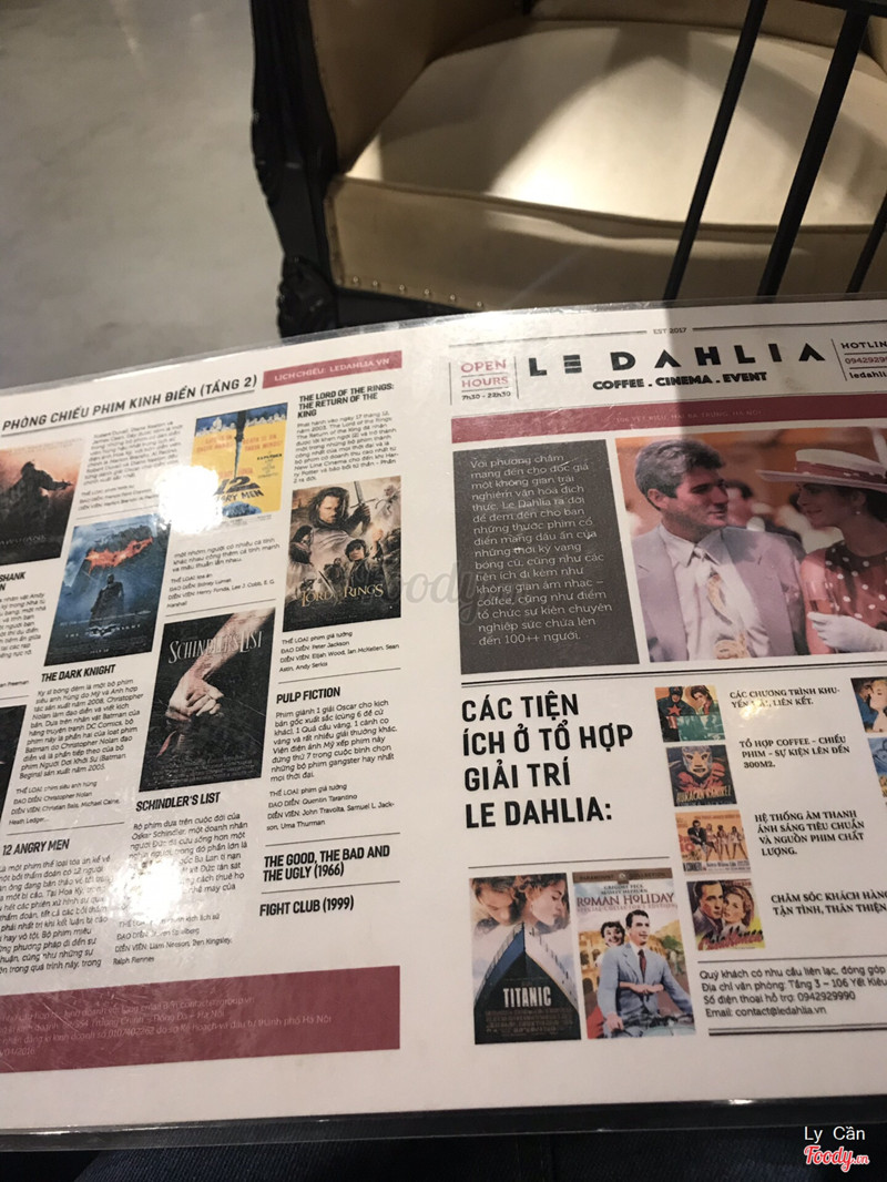 6.4Le Dahlia - Coffee, Cinema & EventTrà kiểu hoàng gia đã k lạ gì vs nhiều ng r và giờ n vẫn đang hot trend.Chọn 1 ngày cuối tuần đến thử xem độ hot của em n. Vị trí:106 yết kiêu có biển đỏ đen le dahlia ở ngoài nên rất dễ nhìn, ở ngoài còn có xích đu Không gian: có 2 tầng order xong ngồi tầng 2, ngoài bán trà các thứ còn có cả rap chiếu phim chiếu bộ phim nổi hồi xưa. Gọi 1 ấm trà với topping: trân châu trắng, sữa, puding, đường... chờ ấm trà đun sôi ngay ở bàn r nhận ly nước còn đang nóng. Trà uống bt đc ấm trà đun hay.Bánh r uống trà quá hợp r. Tổng :212k ...Xem thêm