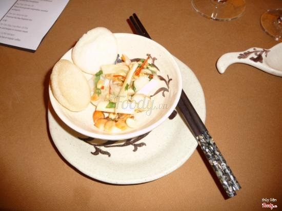 7.0không gian quá đẹpKhông gian ở đây, nhất là vào buổi tối cực kỳ đẹp, huyền ảo. Ánh đèn vàng tỏa sáng ấm áp, thích nhất là mấy cái cục đèn nhỏ nhỏ để trên bàn ăn nhìn hay lắm. Buổi tối có biểu diễn âm nhạc dân tộc, mấy chị mặc áo dài đánh đàn bầu, đàn tranh,... Menu có cả món Việt và món Pháp, ăn đều ngon cả. Hôm đó mình được ăn món hến xào xúc với phồng tôm, như trong ảnh đấy ạ. Trình bày đẹp và cầu kỳ quá, gia tăng thêm bao nhiêu phần trăm hấp dẫn nữa rồi. Hến xào đậm đà, có vị cay tê tê, thơm mùi hành khô phi. Bạn mình gọi steak thì không được ưng ý lắm vì miếng thịt hơi nhạt vị và không được mềm. ...Xem thêm