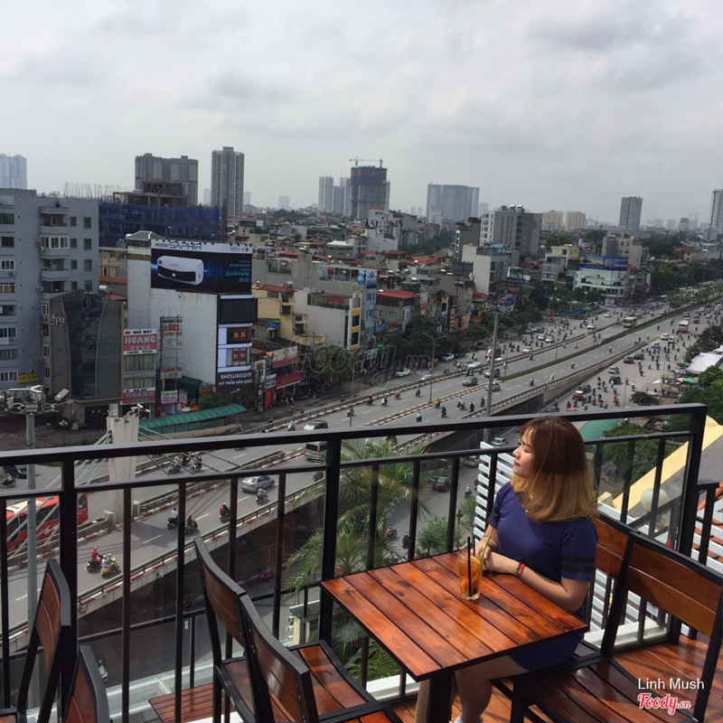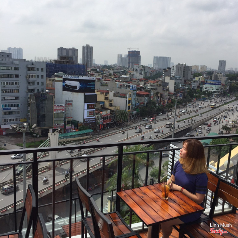 7.0Lylagua - Coffee, Smoothies & Juices* Quán này nằm ngay ngã tư sở, gồm tâng 1,2 và trên sân thượng. Mặc dù ở tầng 1 có đề rooftop cafe nhưng nếu chưa đến thì sẽ không biết có tầng thượng trên cao. Chỗ này view được toàn bộ ngã tư sở và nhìn được bán kính khá xa. Buổi tối, lên đây view trong khá đẹp mắt. * Đi vào quán, đi thang máy lên tầng trên cùng, sau đó đi thang bộ thêm 1 tầng nữa.Trên này gió khá mạnh nên chắc chỉ thích hợp ngồi mùa hè thôi. * Đồ uống của quán cũng đa dạng nhưng chất lượng pha chế chỉ tạm ổn thôi. Nói chung lên đây ngắm cảnh là chính và quán thu hút rất nhiều đôi bạn trẻ lên trò chuyện. ...Xem thêm