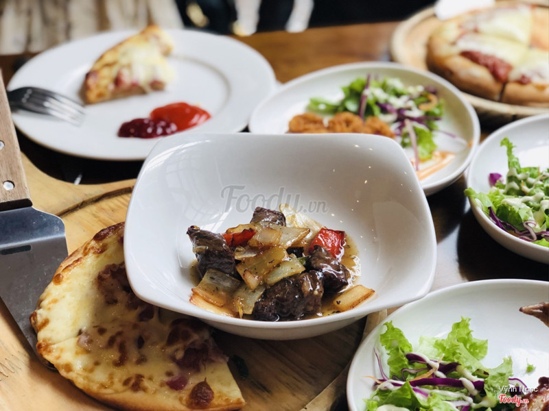 9.2Buffet đồ Tây tuyệt vời!!Tối qua, mình và bạn thân mình đến ăn ở đây. Do vô tình thấy bài đăng trên fb vè buffet đồ Tây nên mình thấy tò mò quá mình quyết định đi ăn thử 1 lần xem sao. Với mức giá 149k mà đc ăn thỏa thích hơn 30 món tr menu v là quá rẻ luôn. Mình thực sự rất hài lòng về các món như pizza bò băm đế dày, nhân thịt bò băm đầy đặn, lườn ngỗng sốt tiêu đậm đà và thịt ngỗng rất mềm, mực chiên Tata nóng giòn chấm cùg sốt gì đó màu vàng rất hợp nh mình k biết tên, salad hoa quả rất dễ ăn nên mình order tận 2 đĩa ăn cho đã vì mình rất thích ăn dưa hấu hihi. Nhưng cũg có vài món mình chưa thực sự hài lòng đó là salad Nga hơi ngấy vì nhiều sốt béo và khoai tây quá, cũg 1 phần do đó là món cuối mình ăn nên cảm giác no làm mình thấy món ăn k còn ngon miệng. Thêm món nữa là pizza Carbonara nhiều sốt phô mai quá nên ăn nhiều hơi ngấy và đế dày quá. Phục vụ thì k có gì để chê, các anh order khá chu đáo: Có 2 a thi thoảng ra dọn đĩa giúp mình và tận tình giải đáp thắc mắc về đồ ăn cho mình. Thực sự với mức giá đó thì quá rẻ so với chất lượng đồ ăn và phục vụ. Mình chắc chắn sẽ còn quay lại nh lần sau mình sẽ rủ thêm nhiều bạn để thưởng thức thêm nhiều món ở nhà hàng. Vote 4.9999 sao hihi ...Xem thêm