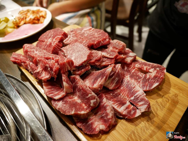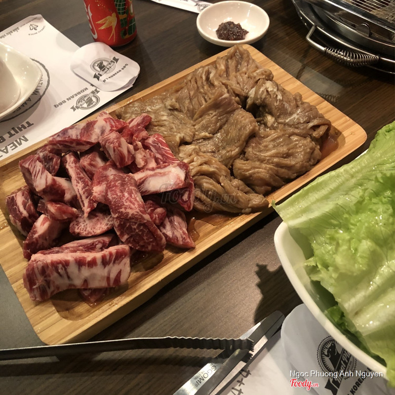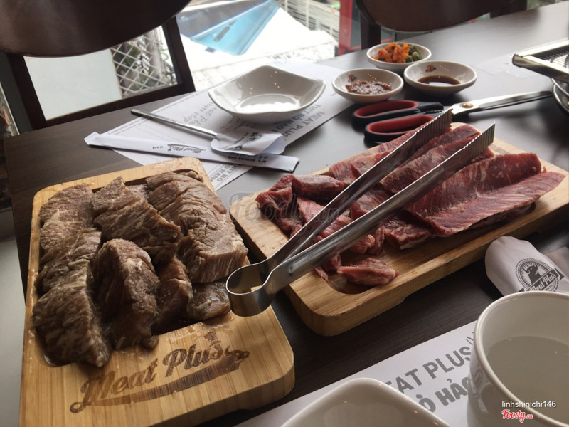 8.8Meat Plus - No.1 Korea Bbq - Hồ TâyMeat Plus cơ sở nào cùng đầu tư không gian khá đẹp. Bên này còn đẹp hơn vì view thẳng Hồ Tây, bàn ngoài trời các kiểu. Lâu lâu hội họp dẫn nhau đi ăn thịt. Team thịt nên chọn nhà hàng thịt bò ăn cho đã. Nhân viên nhiệt tình, đứng tại bàn nướng thịt cho khách luôn. _Sườn bò hoàng đế nướng nguyên tảng rồi cắt nhỏ, nước từ thịt chảy ra nghe xèo xèo đã tai. Cắn miếng thịt ngọt đậm đà dù không tẩm ướp đã miệng gì đâu. _Sườn không xương nướng tái tái rồi chấm sốt tương đậu cũng ngon không kém. Panchan và rau ăn kèm có thể tự lấy thêm. Có một quầy salad để khách tự chọn loại mình thích. Thích nhất salad hoa quả, mát mát dễ ăn. ...Xem thêm