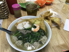 Mì vằn thắn ở đây rẻ, chỉ có 30k thôi đầy đủ há cả, gan, tôm, thịt, trứng… Nước dùng thanh, mình thấy ăn được nhưng bạn mình lại chê nhạt, chắc tại mình ăn nhạt quen rồi nên thấy hợp khẩu vị! Cho thêm chút ớt cay cay và chút chanh chua chua là ok rồi, tuy nhiên gan ở đây mình thấy không ngon lắm nó hơi bị hôi, mình ăn không quen nên bỏ đi luôn. Hoành thánh thì ngon, thơm, nhân thịt đầy đặn. Với giá như thế này thì mình thấy chất lượng cũng tạm ổn! Đ/c: Mì vằn thắn - 146*** ...Xem thêm
