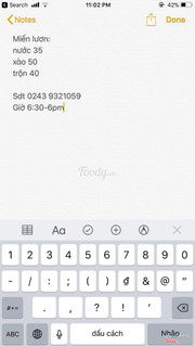 Ghi chú đặt bàn