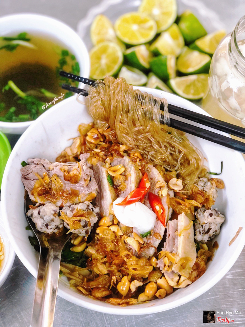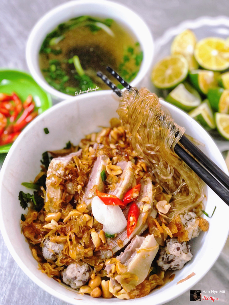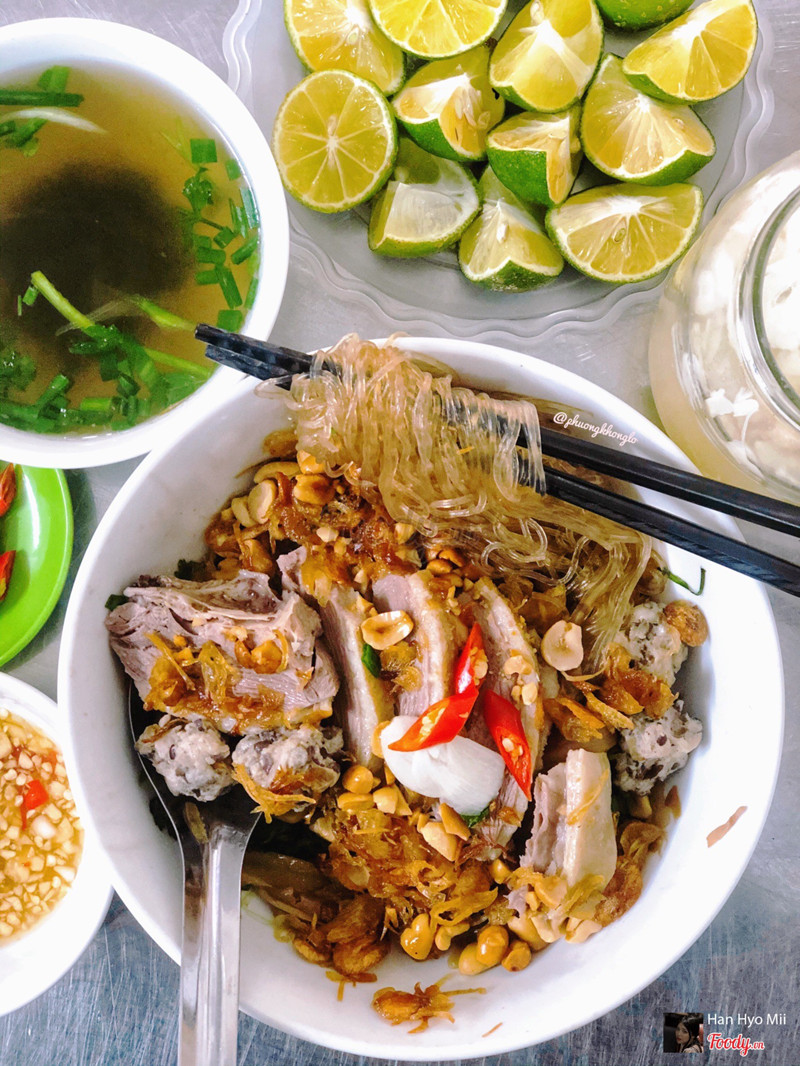8.4Miến Ngan Trộn - Chợ Nam Đồng[Ngan cô Huệ] 📍A1 Chợ Nam Đồng ⏰10.30am - 2pm 💲Bún miến ngan trộn/nước - 35-40k/bát Ngan cháy tỏi - 175k/nửa con (bún + canh măng) Quán này bán phở từ 6h30 đến 10h30 thì bán bún miến ngan các kiểu con đà điểu nha. 1 suất miến trộn của mình đầy đặn phết. Miến sợi dai mềm để lâu cũng k bị bết dính ăn đc phết, thịt ngan dai ngon mỗi tội cô thái hơi to ăn hơi ngập mồm xíu :))) ở đây có thêm nước chấm ngan chua ngọt ăn cuốn vãi. 4 viên mọc ăn cũng ngon nữa, đc cái nhiều hành khô vs lạc là ưng r. Nước dùng âm ấm thanh thanh ngọt nước phết. 1 suất cũng no nhưng mà với đứa ăn khoẻ như tui thì vẫn còn muốn ăn thêm bát nữa :)) chắc lần sau thử miến nước xem sao. ...View more
