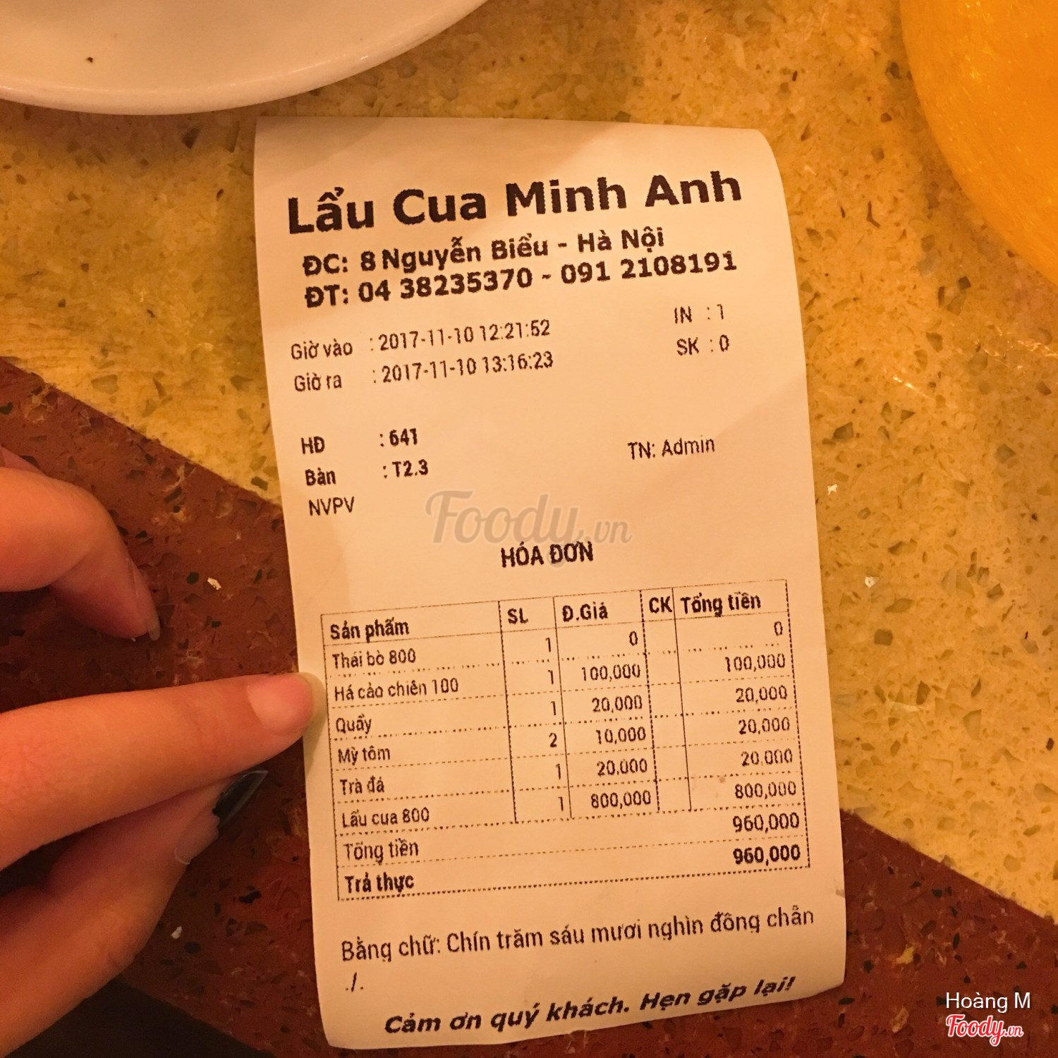 Ghi chú đặt bàn